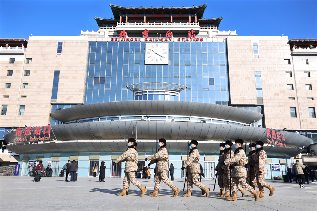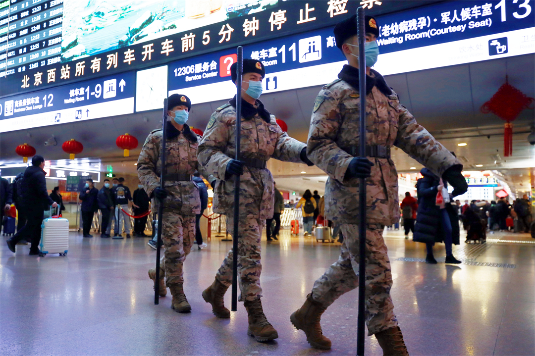 1月26日,全國春運正式拉開帷幕。擔負北京西站守衛(wèi)任務和北京豐臺站定點警戒任務的武警北京總隊執(zhí)勤第六支隊官兵堅守執(zhí)勤戰(zhàn)位,熱心為群眾提供幫助,以實際行動溫暖守護旅客歸鄉(xiāng)路。
