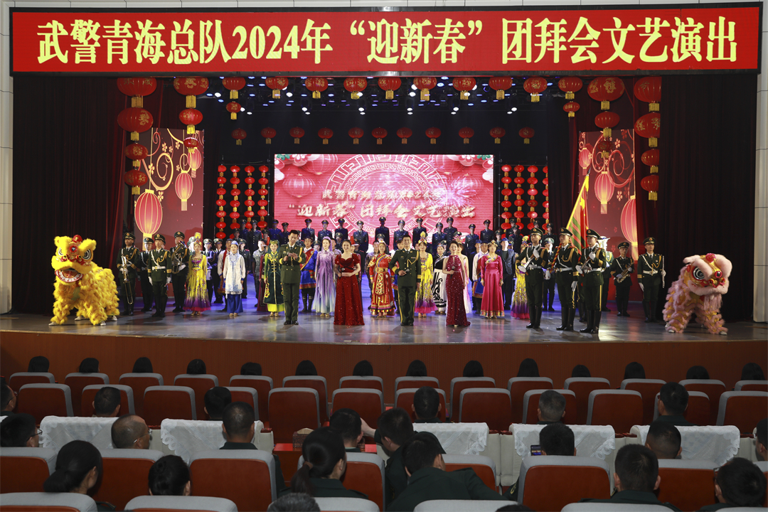 2月4日下午,武警青??傟牰Y堂內(nèi)曲樂高奏、歡聲陣陣,總隊領(lǐng)導(dǎo)、全體機(jī)關(guān)干部和駐寧部分官兵及家屬歡聚一堂共賀新春。