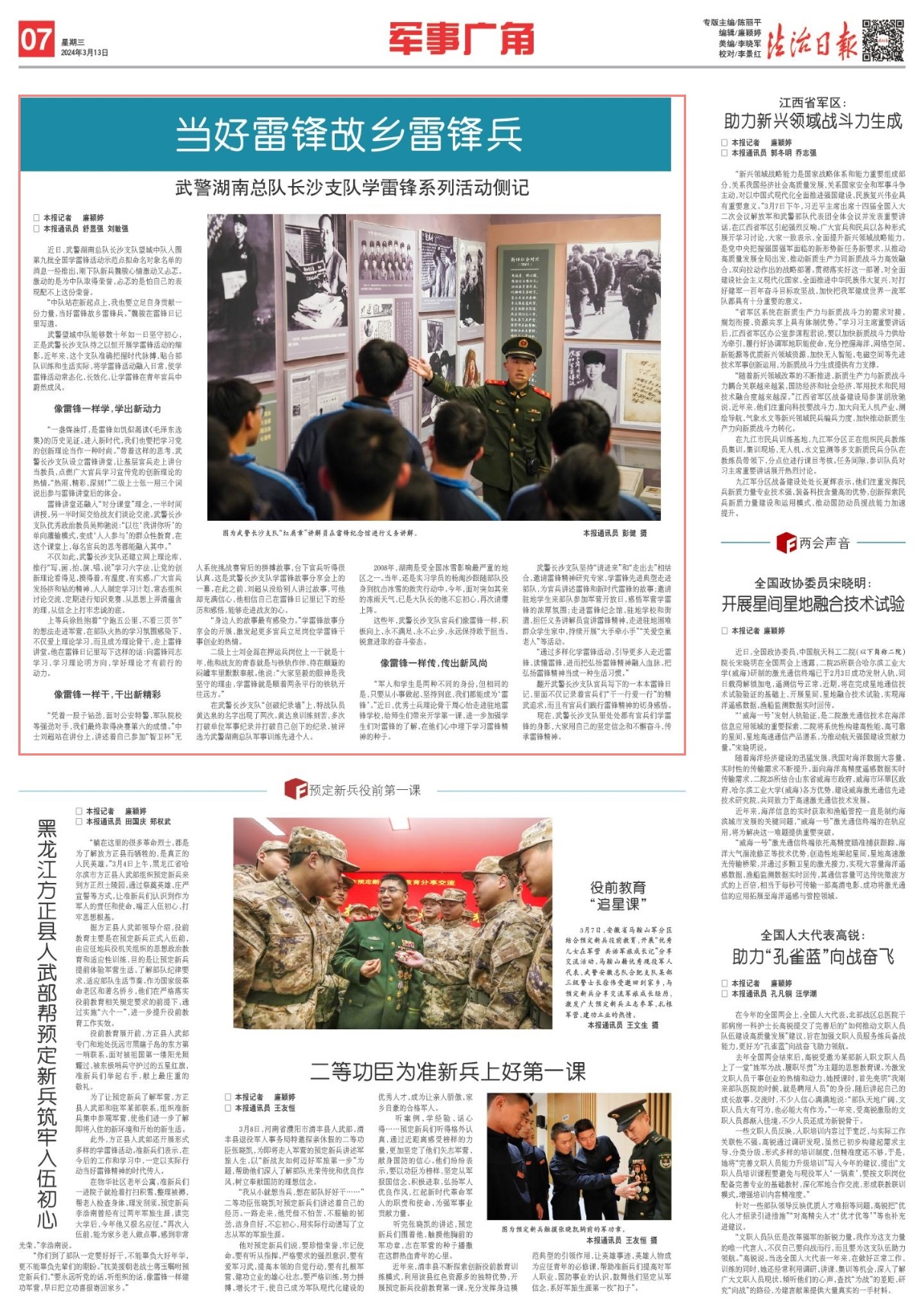 現(xiàn)在,武警長沙支隊(duì)里處處都有官兵們學(xué)雷鋒的身影,大家用自己的堅定信念和不懈奮斗,傳承雷鋒精神。