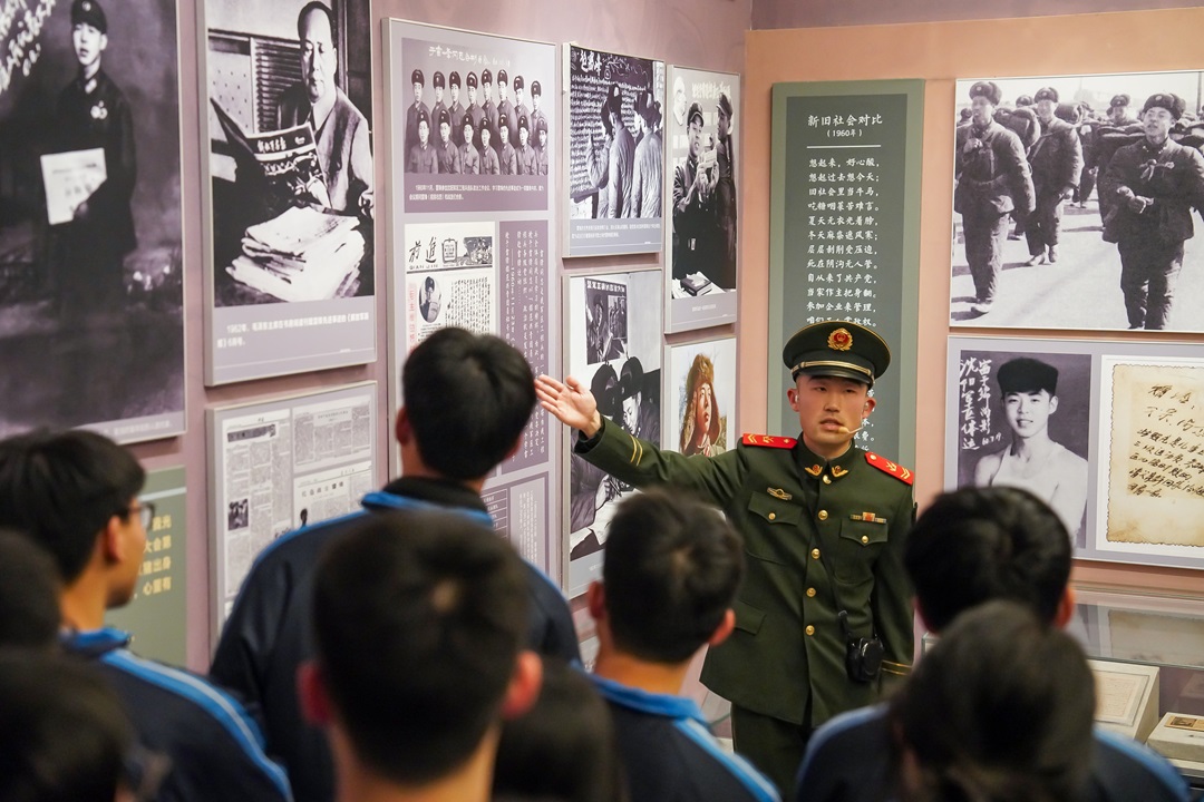 圖為武警長沙支隊(duì)“紅肩章”講解員在雷鋒紀(jì)念館進(jìn)行義務(wù)講解。