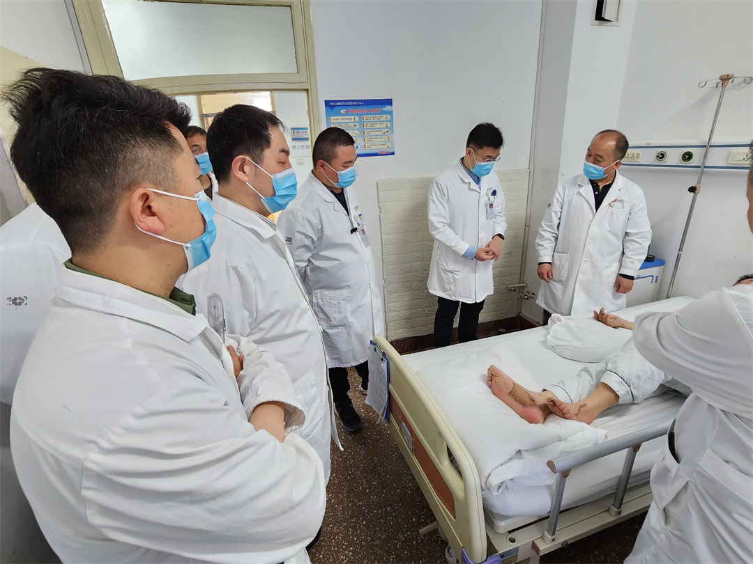 “您不用壓力太大,已經(jīng)是術(shù)后第5天了,沒(méi)有發(fā)生血管痙攣或者血栓,基本穩(wěn)定的血液循環(huán)說(shuō)明在我們醫(yī)護(hù)團(tuán)隊(duì)精心治療和護(hù)理下,再植的手指已經(jīng)成活。用不了多久,您就能夠繼續(xù)干農(nóng)活啦!”張建政耐心向傷者解釋傷情恢復(fù)情況。
