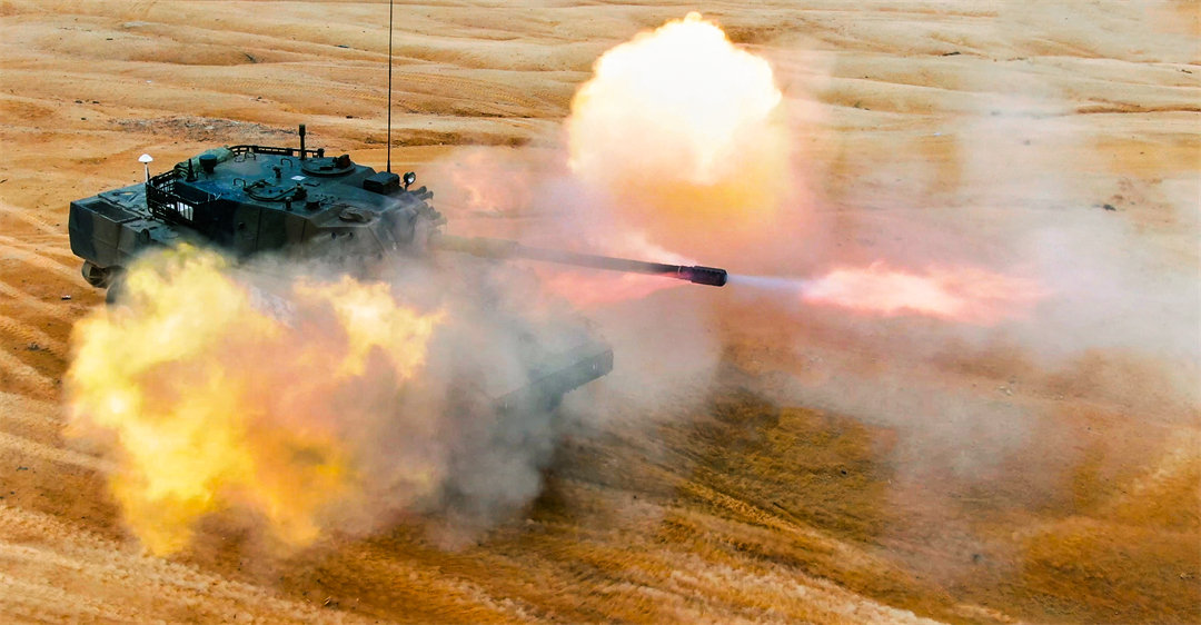 圖為裝甲分隊采取戰(zhàn)斗隊形向“敵”陣地實施火力摧毀,殲滅”敵“裝甲群。劉家軒 攝