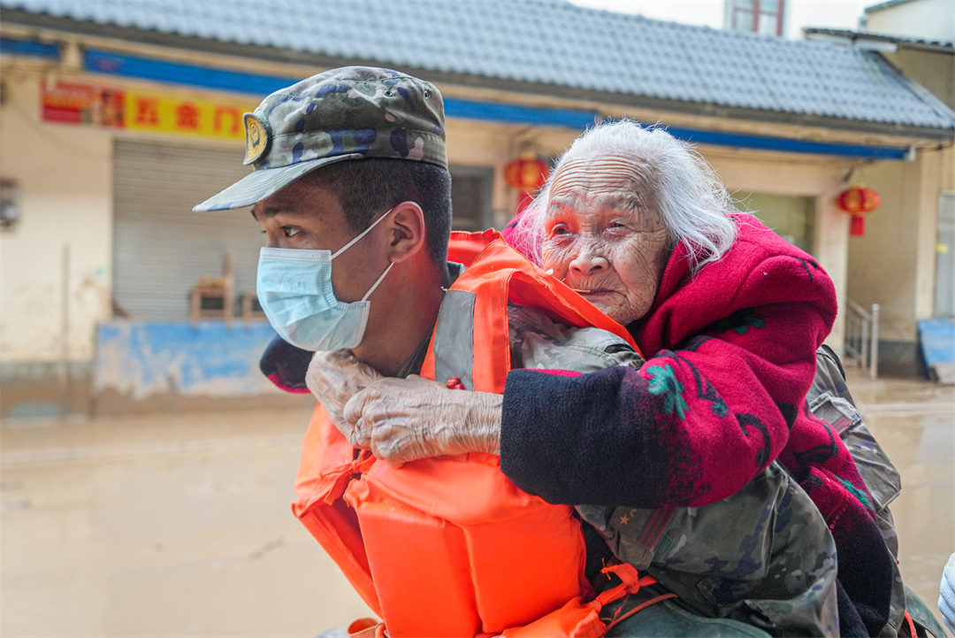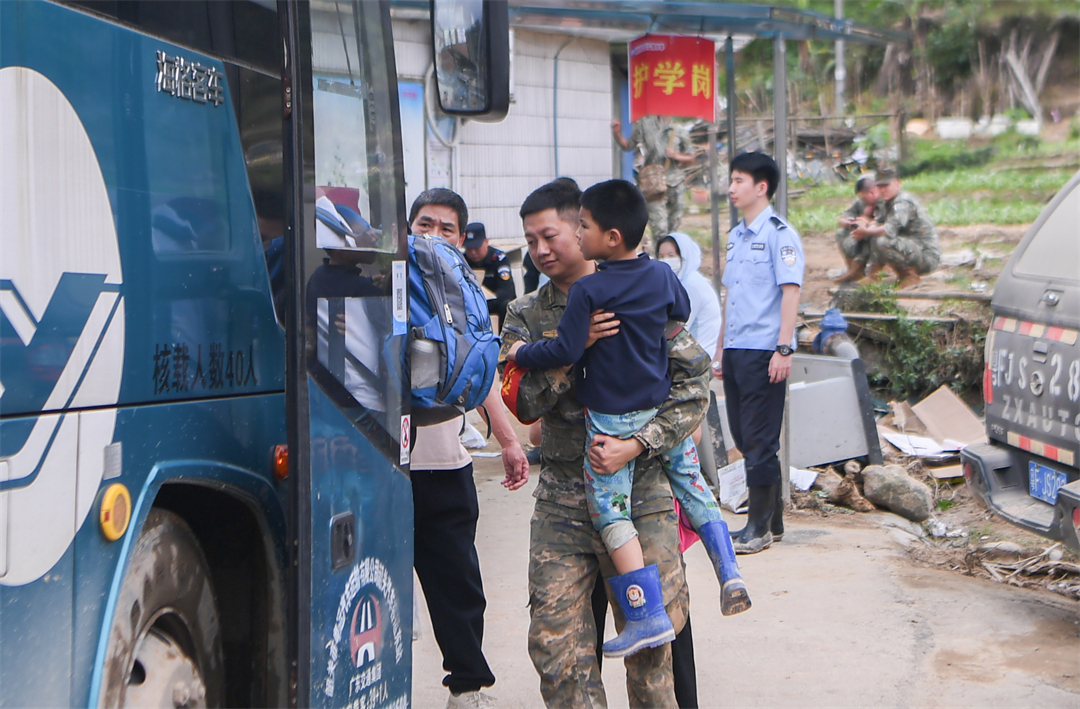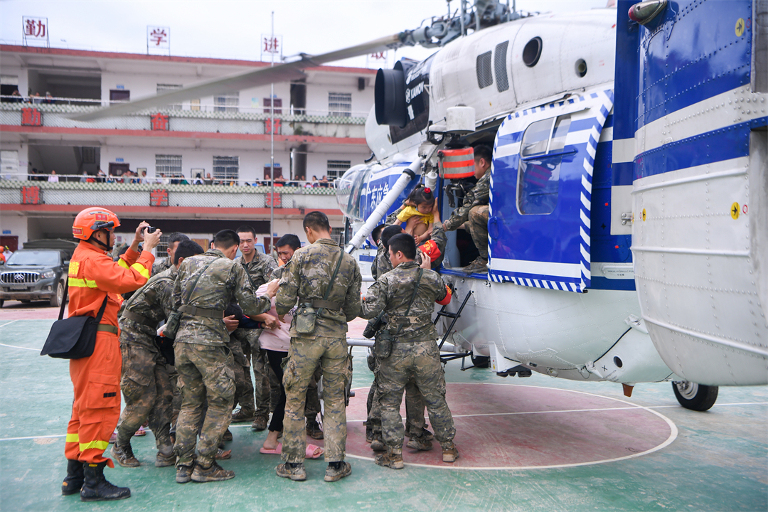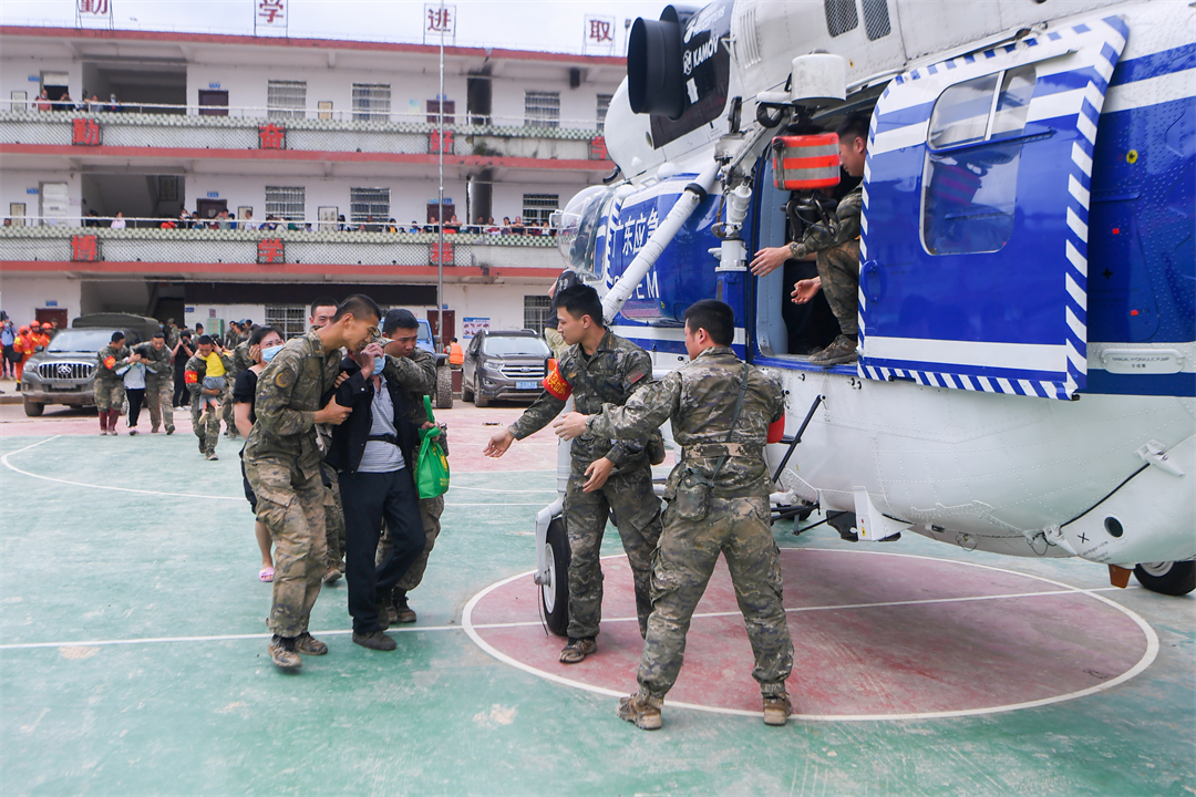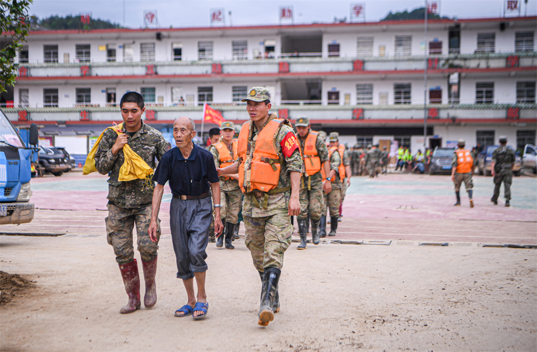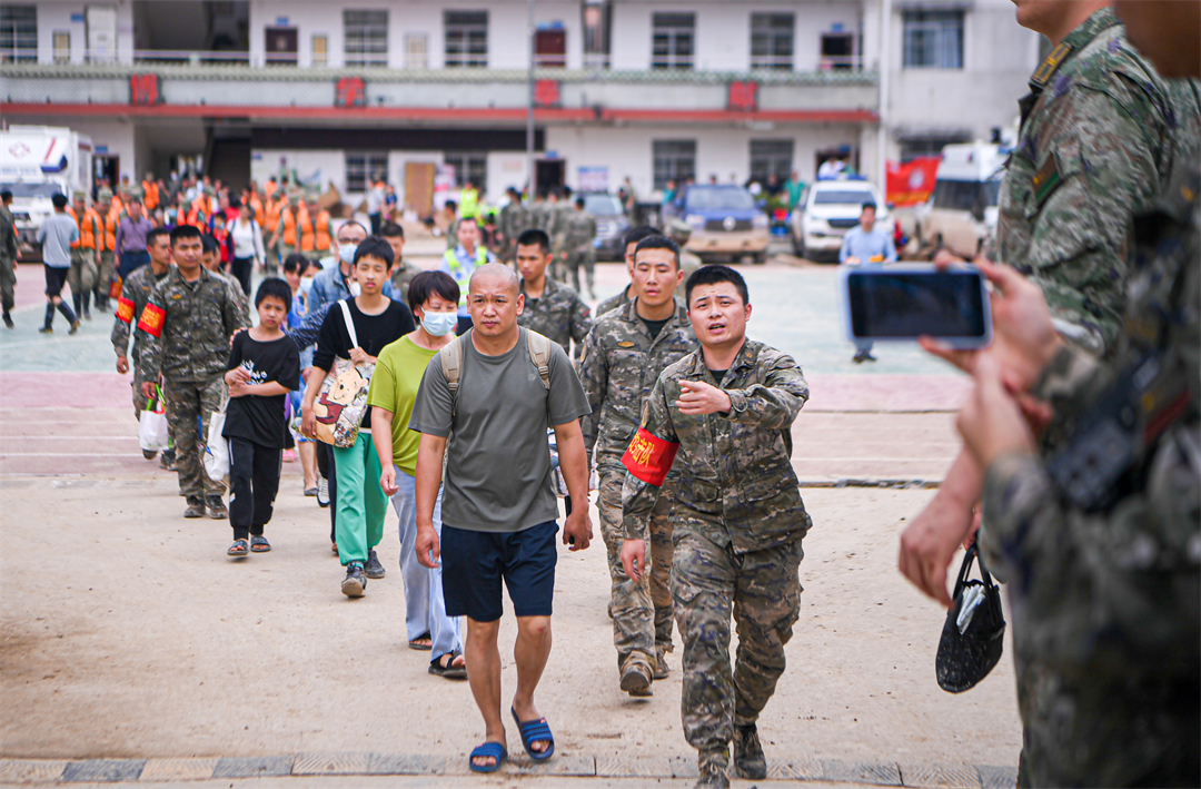 “凌晨6點(diǎn)天還沒(méi)亮,所有官兵就帶上干糧出發(fā)到各個(gè)村去疏散群眾?!睏钪艺f(shuō),江灣鎮(zhèn)下屬6個(gè)行政村有大大小小43個(gè)自然村,除情況最嚴(yán)重的梁屋村派出60人外,鍋溪村、圍坪村、江灣中心小學(xué)各派出30名兵力,胡屋村派出40名兵力,劃分若干個(gè)小組,聯(lián)合地方救援人員,按照先遣勘察、重裝開(kāi)道、輕裝跟進(jìn)、觀察警戒的方式,逐村逐戶搜索勸離,剩余人員就在江灣中學(xué)和江灣鎮(zhèn)政府協(xié)助轉(zhuǎn)運(yùn)群眾。
