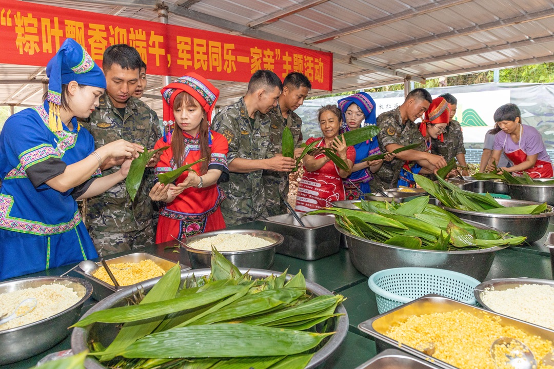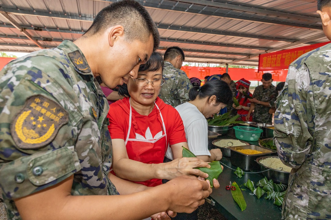 端午佳節(jié)到來之際,武警廣西總隊(duì)南寧支隊(duì)駐地群眾走進(jìn)軍營,和官兵們一起包粽子,讓官兵在第二故鄉(xiāng)感受到親情的溫暖。