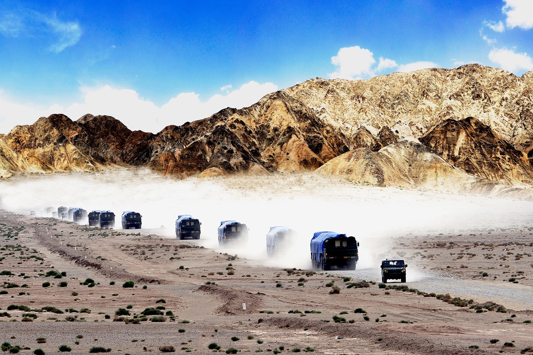圖為火箭軍某導(dǎo)彈旅在大漠深處開(kāi)展實(shí)戰(zhàn)演練。