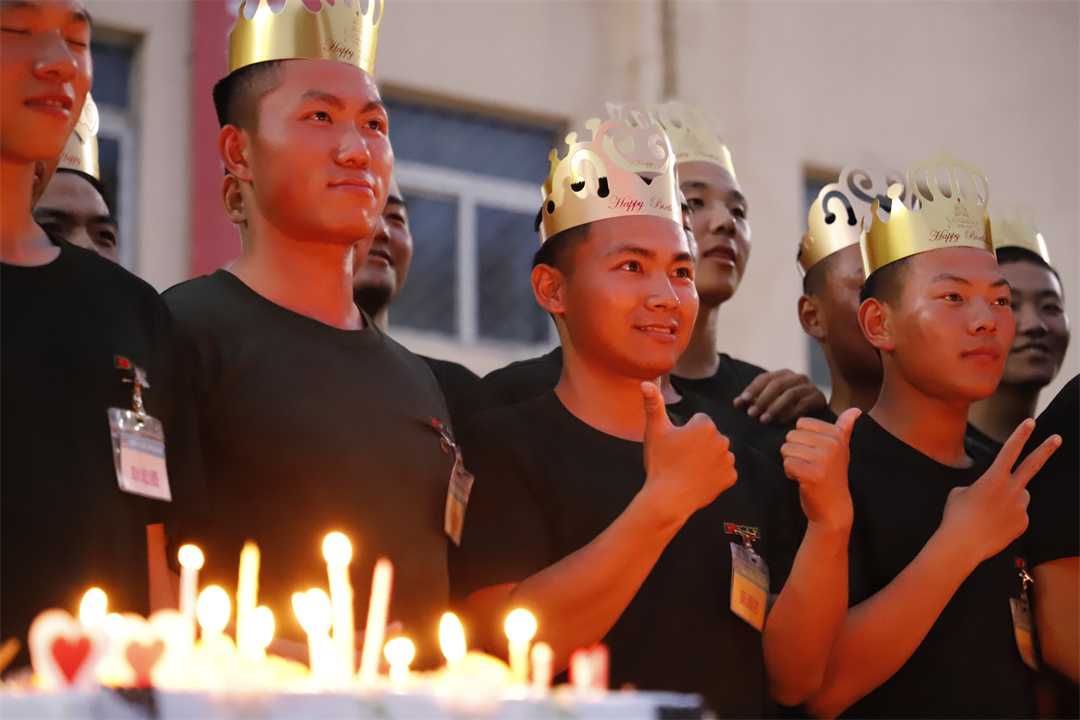 美食節(jié)當天,壽星們登上舞臺,互相戴上生日帽,與大家共同分享第一次在軍營過生日的新鮮與喜悅。在場官兵紛紛為壽星送上祝福,整個軍營沉浸在一片歡聲笑語中。