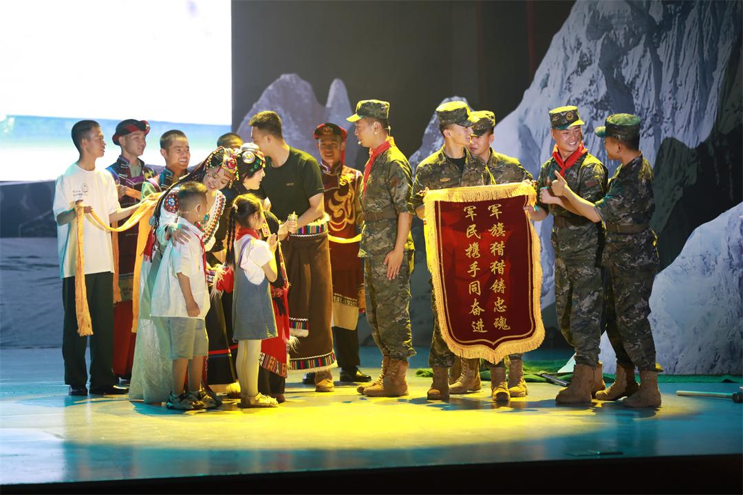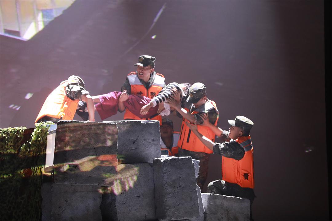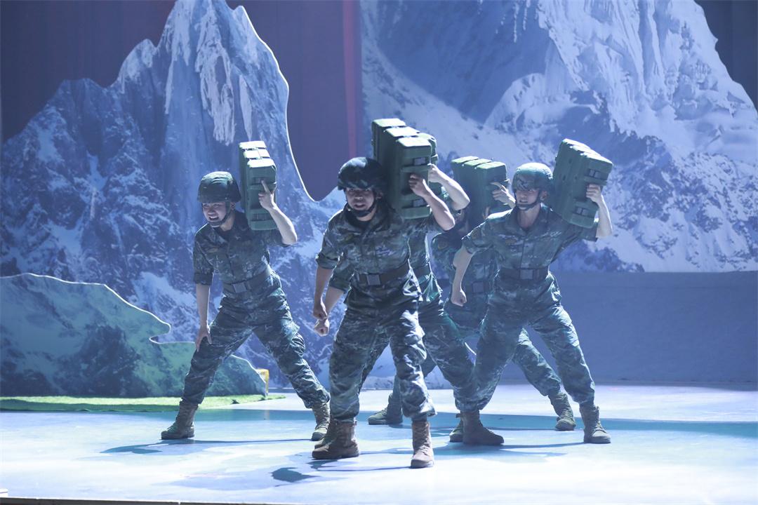 情景劇由武警青??傟牴俦詣?chuàng)自排,分為“忠誠——赤膽無畏”“使命——擔當奉獻”“奮斗——凝聚前行”三個篇章,融合對白、演唱、舞蹈等多種方式,以總隊歷年來涌現出的張海西、段磊、張新磊、楊富祥、王賞、趙江維等先進典型為突出代表,以官兵們執(zhí)勤處突、搶險救援、精準扶貧等重大任務為原型,將“兩彈一星”精神、“西路軍”精神、“老高原”精神融入其中,感人肺腑、催人淚下。