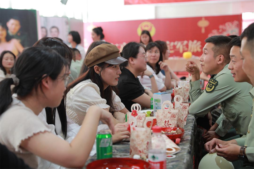 正式活動(dòng)在精彩的才藝展示中拉開帷幕,舞蹈、歌曲、互動(dòng)游戲輪番上演,參加活動(dòng)的兵哥哥和小姐姐們快速提升彼此的熟悉度和默契感,在互動(dòng)中加深了解,在溝通交流中增進(jìn)友誼。很多人主動(dòng)出擊,相互邀請(qǐng)約會(huì)交流,邁出幸福第一步。在最后真情告白環(huán)節(jié),一名收獲愛情的小姐姐緊緊牽著兵哥哥的手,臉上洋溢著幸福:“你守護(hù)著祖國(guó),請(qǐng)讓我守護(hù)著你!”