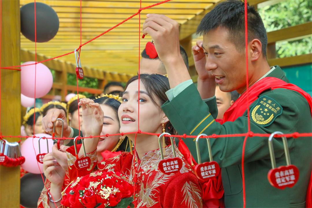 8月10日,在充滿浪漫和甜蜜的傳統(tǒng)節(jié)日七夕節(jié),武警青??傟?duì)舉行“愛在高原·情定軍旅”集體婚禮暨軍地青年聯(lián)誼活動(dòng)。在總隊(duì)領(lǐng)導(dǎo)、親朋好友、戰(zhàn)友們的見證下,30對(duì)新人喜結(jié)連理,百余名軍地優(yōu)秀青年相約在這里,共同開啟一場(chǎng)幸福和緣分的邂逅之旅。
