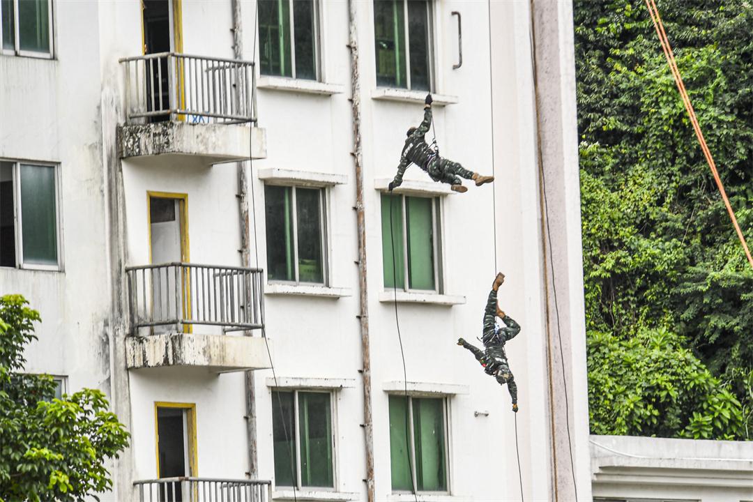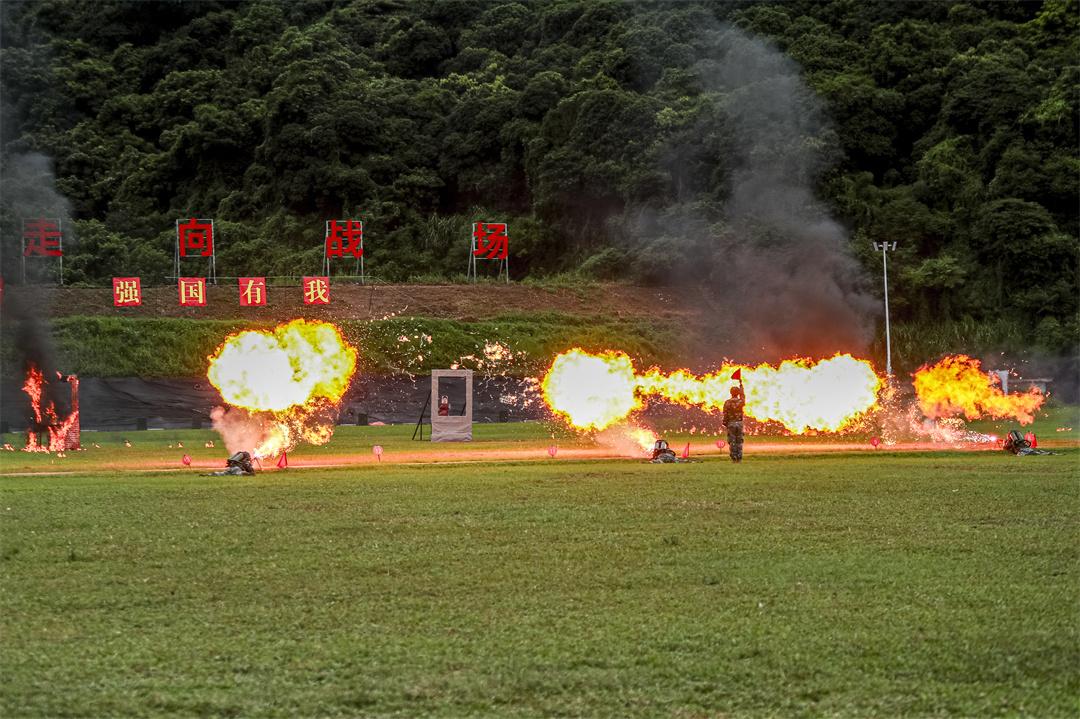 圖為港澳青少年近距離觀看武警官兵實(shí)戰(zhàn)化軍事訓(xùn)練。