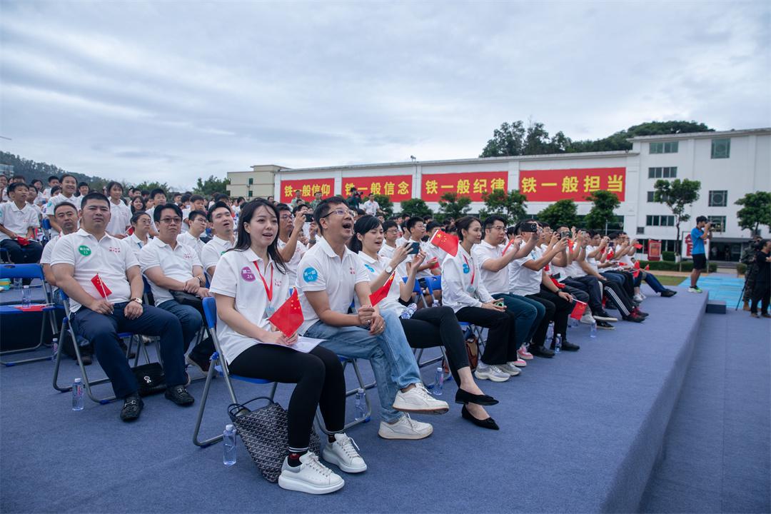 圖為武警廣東總隊(duì)開展“同心同行·強(qiáng)國有我”港澳青少年進(jìn)軍營活動現(xiàn)場,大家高舉手中國旗。