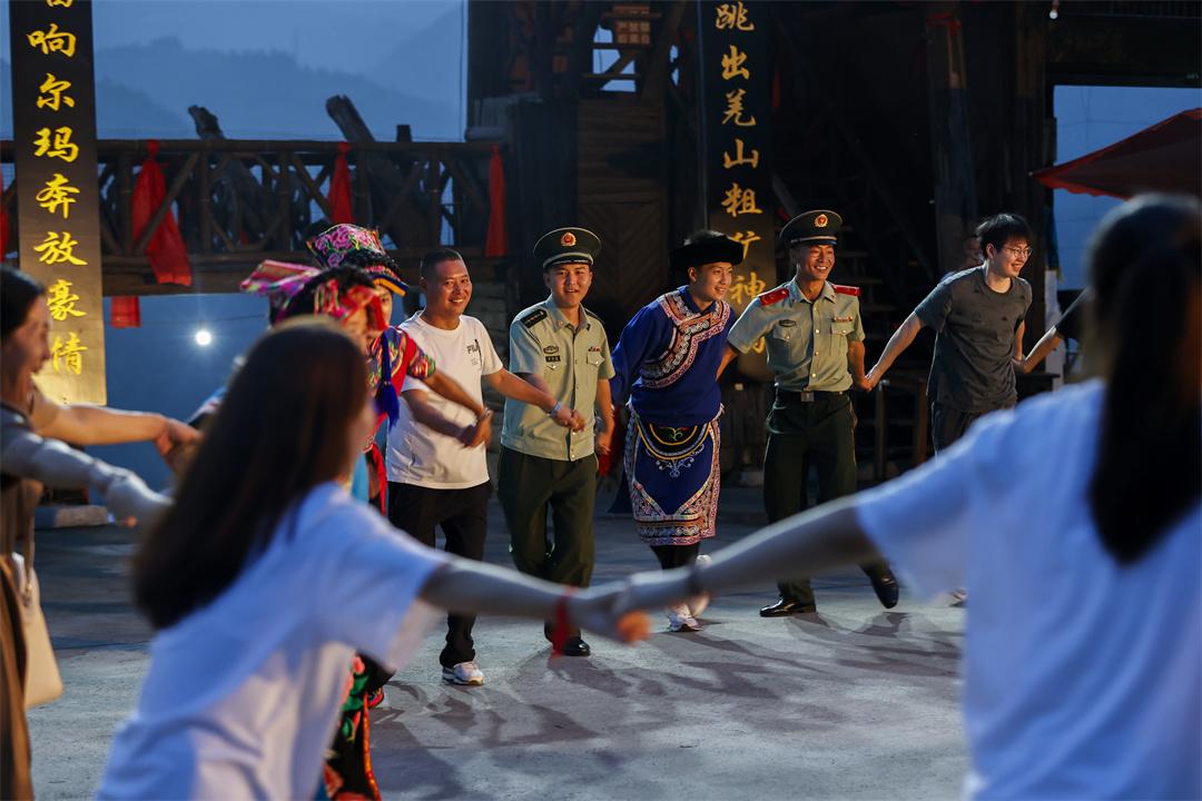 為了讓這些軍民魚水深情的故事被銘記,讓這種自強(qiáng)不息的精神能傳承,武警北川中隊(duì)官兵與當(dāng)?shù)匚幕^共同創(chuàng)作,打造出以《春回石椅》《云朵上的吶嘖嘖》《羌山新舞》等劇作為代表的文化名片,并多次被搬上軍地重要文化活動(dòng)舞臺(tái)。