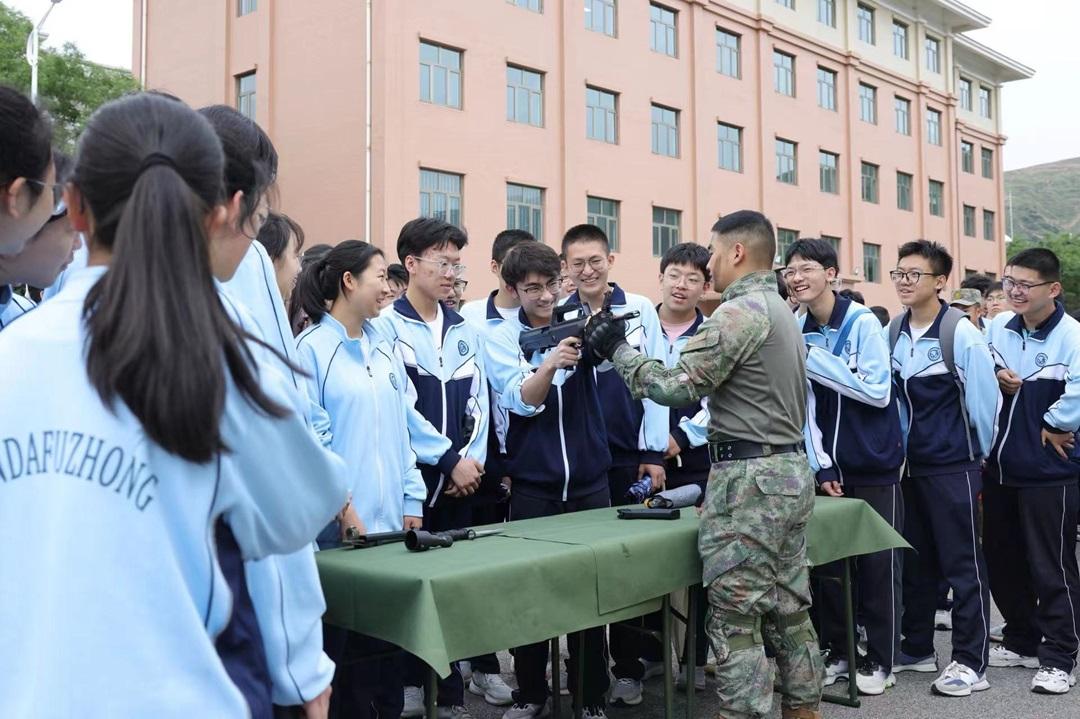 仲秋清晨,西北高原,火箭軍某部駐地中學(xué)200余名師生正在參加一場特殊的升旗儀式?;顒蝇F(xiàn)場,這批首次走進綠色軍營的學(xué)生見到了國產(chǎn)武器裝備模型,聽到了國防教育的生動講解,一顆顆愛國愛軍的種子播撒在孩子們心里。