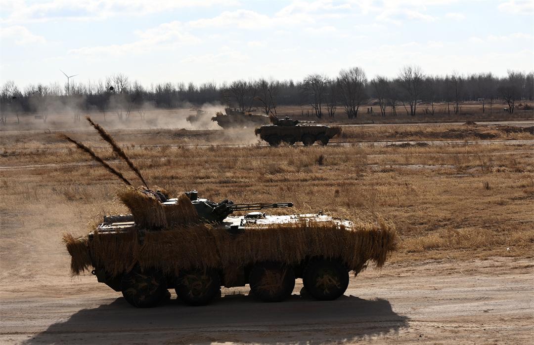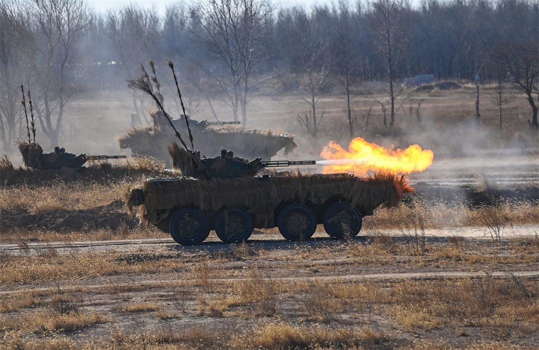 圖為“百戰(zhàn)百勝營”官兵駕駛步戰(zhàn)車進行實彈戰(zhàn)術綜合演練。