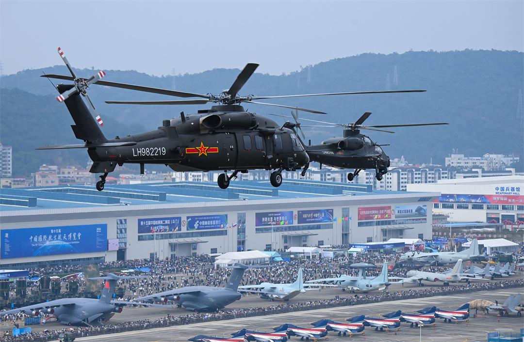 藍(lán)天之下,戰(zhàn)機(jī)轟鳴。第十五屆中國(guó)航展現(xiàn)場(chǎng),陸軍數(shù)架多型戰(zhàn)機(jī)貫空而來(lái),呈戰(zhàn)斗隊(duì)形通場(chǎng)。