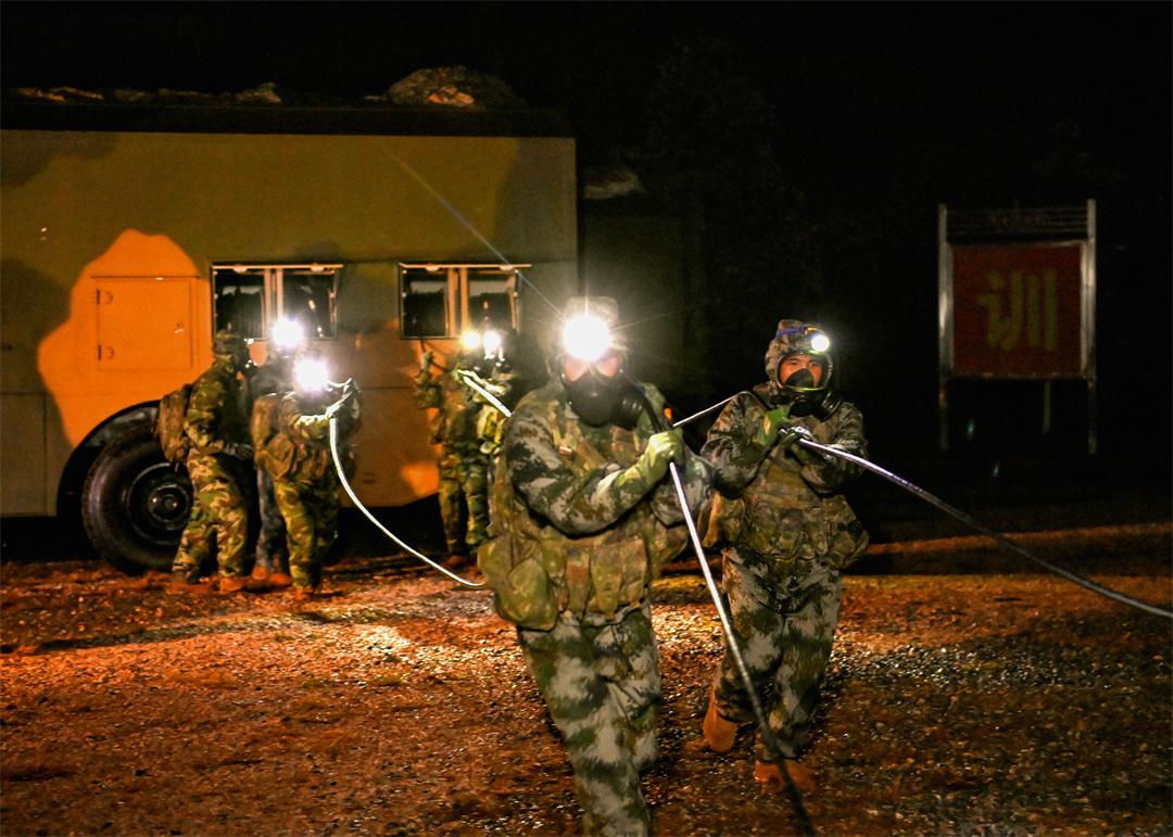 圖為火箭軍某旅高級軍士展開全防護(hù)下訓(xùn)練演練。劉明松 攝