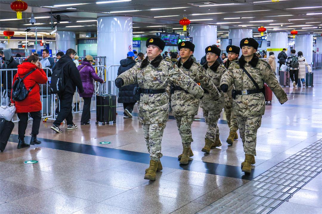 2月3日至6日,北京迎來(lái)返程客流高峰。為確保旅客安全順利抵京,擔(dān)負(fù)北京西站執(zhí)勤任務(wù)的武警北京總隊(duì)執(zhí)勤第六支隊(duì)官兵堅(jiān)守崗位,守護(hù)旅客出行平安。