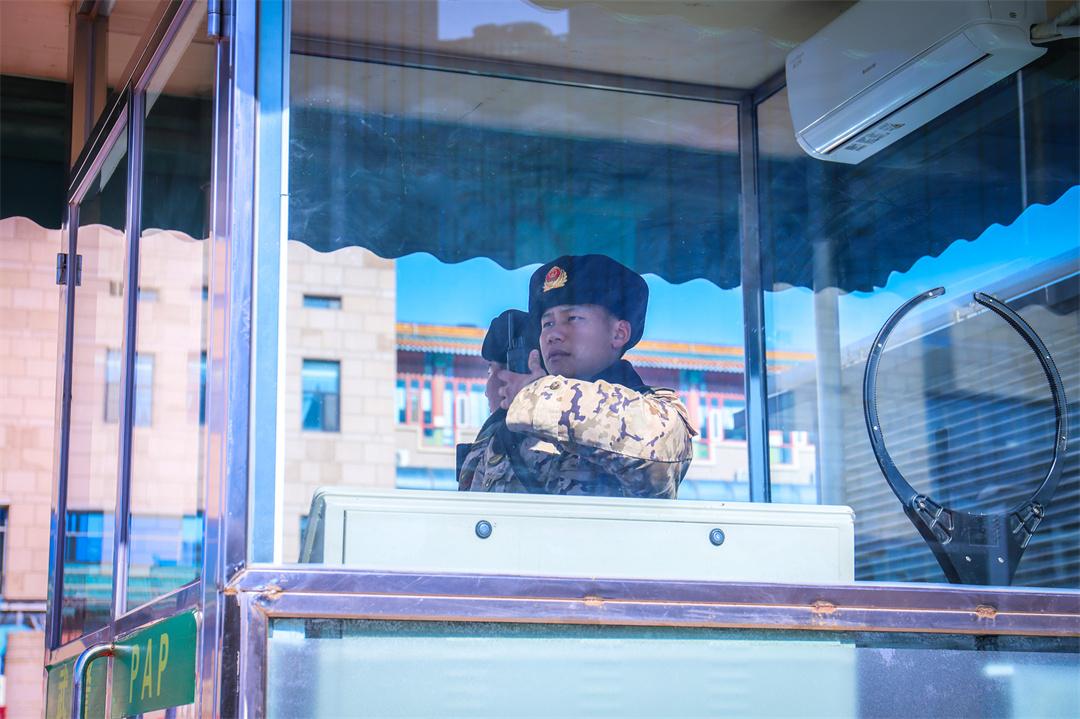 圖為執(zhí)勤武警正在進(jìn)行互通互聯(lián)。