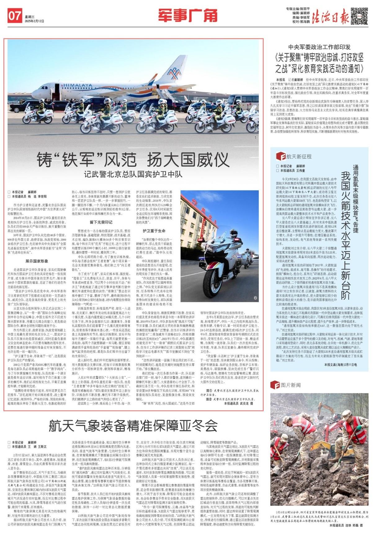 “我宣誓:永遠樹立‘護衛(wèi)重于生命、形象高于一切’的思想,堅決做到服從命令,聽從指揮;愛護車輛裝備,鉆研業(yè)務(wù)技能,苦練護衛(wèi)本領(lǐng);英勇戰(zhàn)斗,頑強拼搏,堅決完成任務(wù)!”警燈閃爍、馬達轟鳴,鏗鏘有力的宣誓響徹云霄,國賓護衛(wèi)中隊隊員們再次出發(fā),奮進在護衛(wèi)新時代大國外交的征程上。