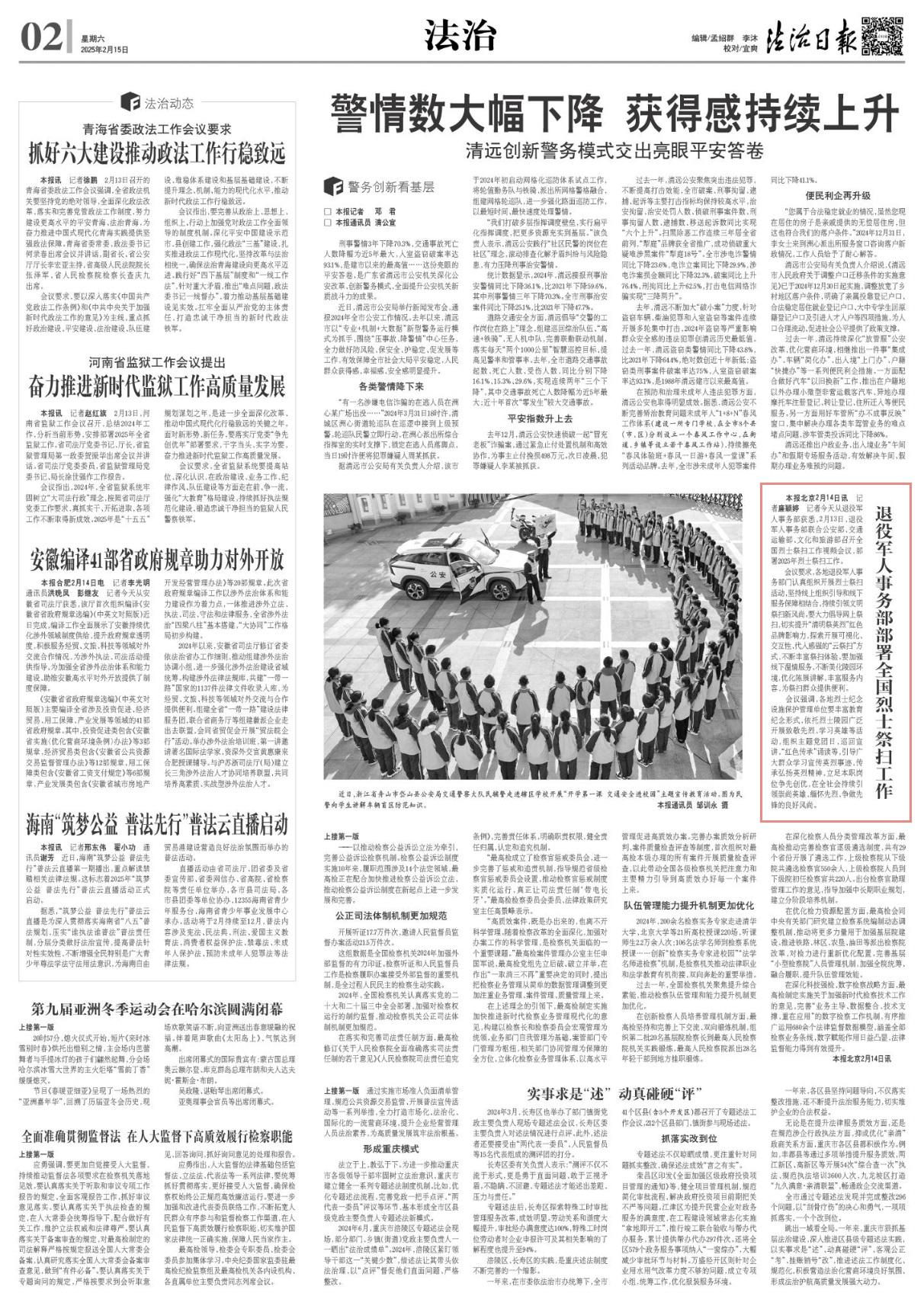 記者2月14日從退役軍人事務(wù)部獲悉,2月13日,退役軍人事務(wù)部聯(lián)合公安部、交通運(yùn)輸部、文化和旅游部召開(kāi)全國(guó)烈士祭掃工作視頻會(huì)議,部署2025年烈士祭掃工作。