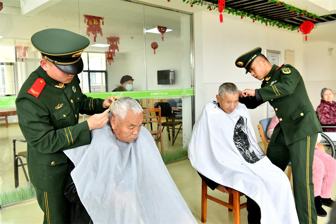 近日,武警江西總隊上饒支隊開展“傳承雷鋒精神,踐行初心使命”主題活動。官兵們走進(jìn)駐地福利院為老人疊被子、理發(fā)、過生日,為傳承雷鋒精神、構(gòu)建和諧社會作出實(shí)際行動。