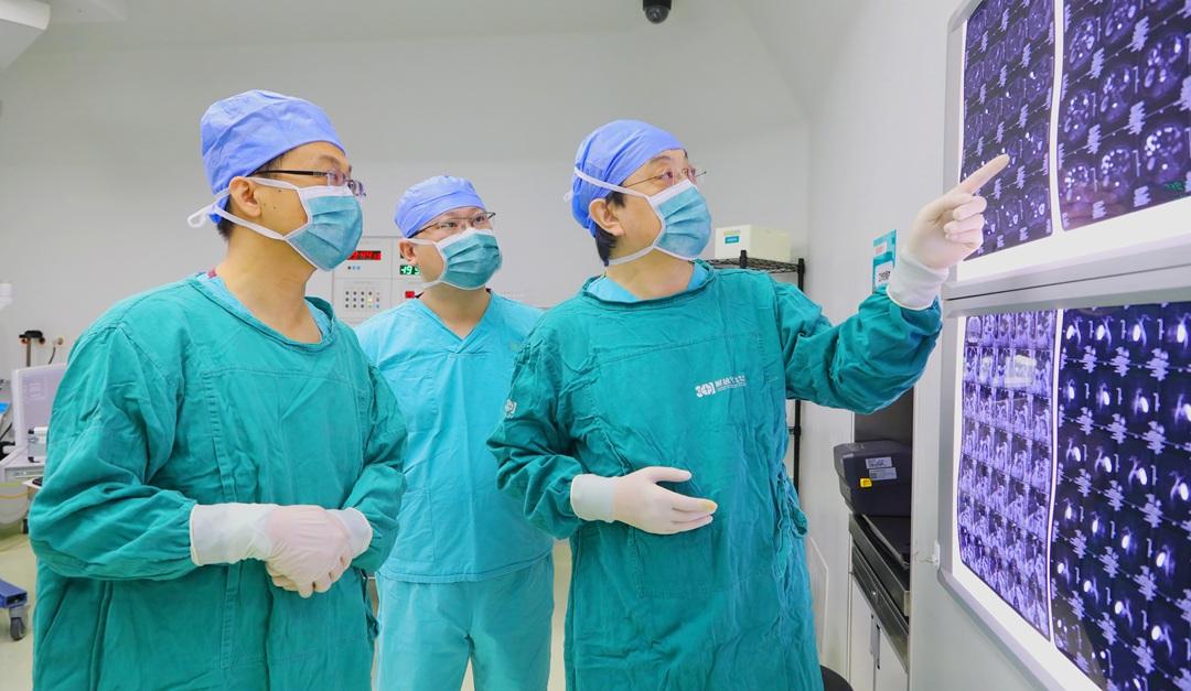 圖為姜凱主任團隊一邊查閱核磁膠片一邊討論手術(shù)細(xì)節(jié),制定周密方案,確保手術(shù)萬無一失。
