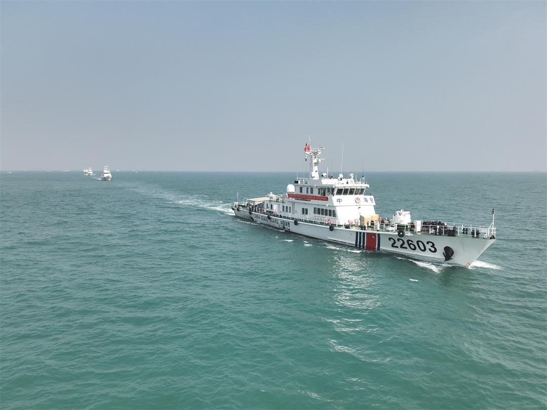 圖為廣西海警局組織艦艇編隊(duì)進(jìn)行轄區(qū)巡航。