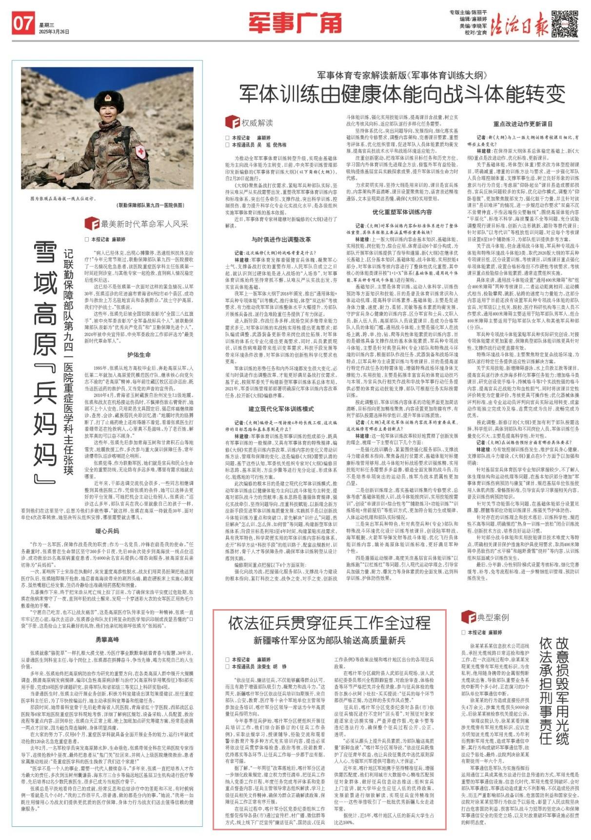 “必須從源頭上提升兵員素質(zhì),為部隊(duì)輸送高質(zhì)量‘新鮮血液’?!笨κ曹姺謪^(qū)領(lǐng)導(dǎo)說(shuō),“依法征兵既維護(hù)了應(yīng)征青年權(quán)益,也讓兵役征集優(yōu)中選優(yōu)原則深入人心,為強(qiáng)軍興軍提供可靠的人才保證。”
