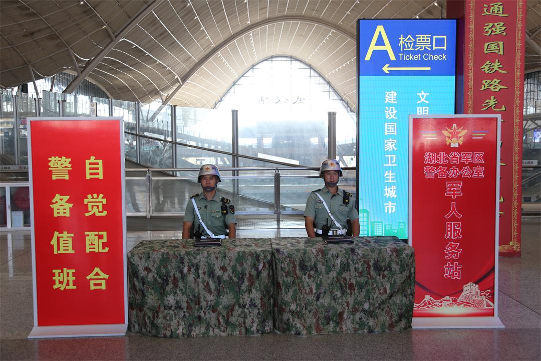 在湖北省軍區(qū)警備辦公室指導(dǎo)下,警備糾察隊(duì)推動(dòng)執(zhí)法與服務(wù)相結(jié)合,每年新兵起運(yùn)時(shí),到火車站引導(dǎo)接兵干部和新兵進(jìn)站候車,為過往退役軍人中轉(zhuǎn)提供保障,做到有求必應(yīng),用“橙”意服務(wù)暖兵心。