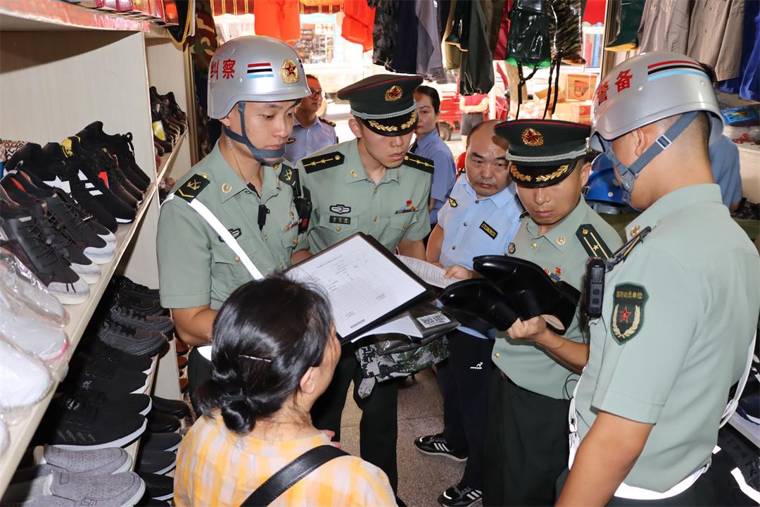 圖為警備糾察隊(duì)與市場監(jiān)管部門開展聯(lián)合執(zhí)法。