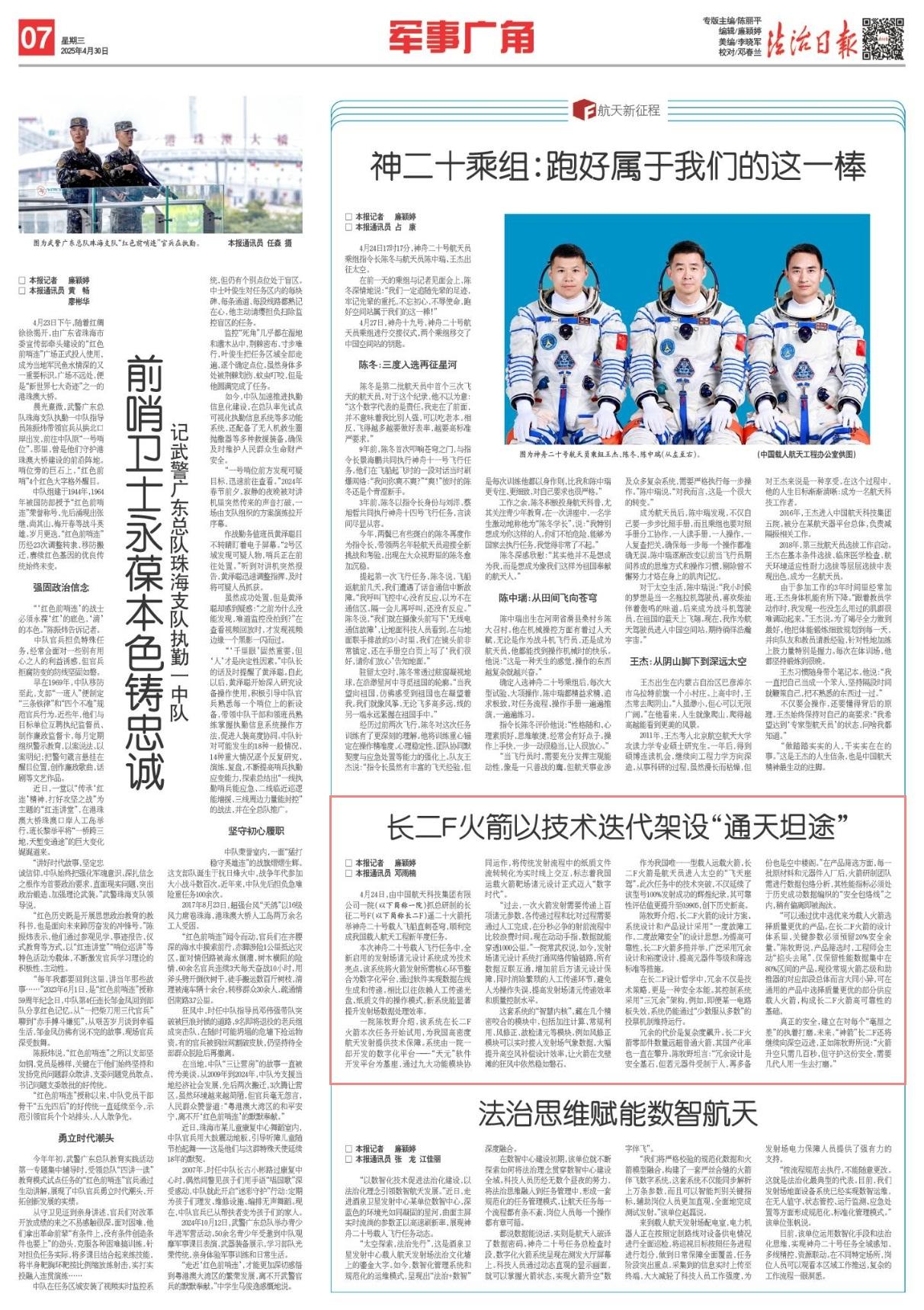 4月24日,由中國航天科技集團有限公司一院(以下簡稱一院)抓總研制的長征二號F(以下簡稱長二F)遙二十火箭托舉神舟二十號載人飛船直刺蒼穹,順利完成我國載人航天工程新年度任務(wù)。