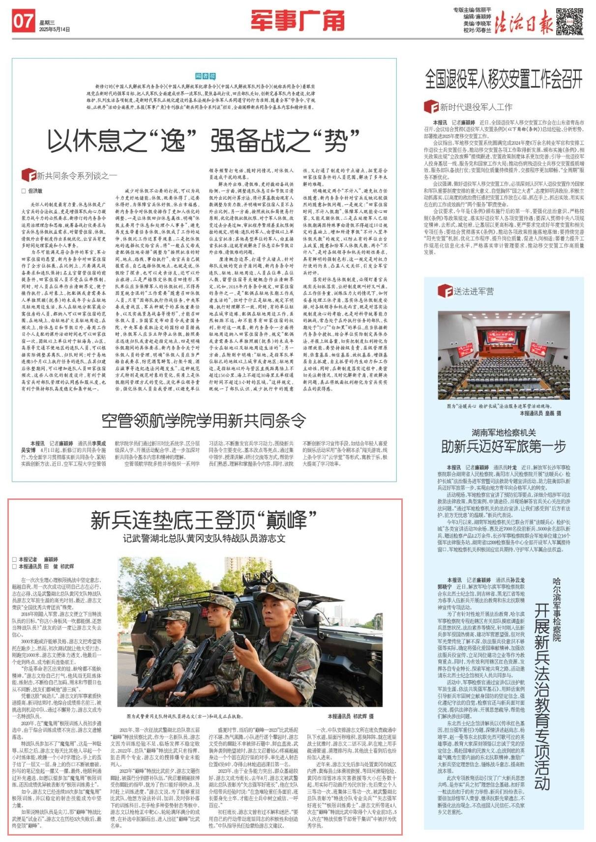 2023年,由于業(yè)務(wù)能力突出、群眾基礎(chǔ)較好,游志文成為班長(zhǎng)。去年8月,游志文被武警湖北總隊(duì)表彰為“矢志強(qiáng)軍好班長(zhǎng)”,他在支隊(duì)介紹帶兵經(jīng)驗(yàn)時(shí)說(shuō):“在急難險(xiǎn)重任務(wù)面前,班長(zhǎng)要身先士卒,才能在士兵中樹(shù)立威信、一呼百應(yīng)。”