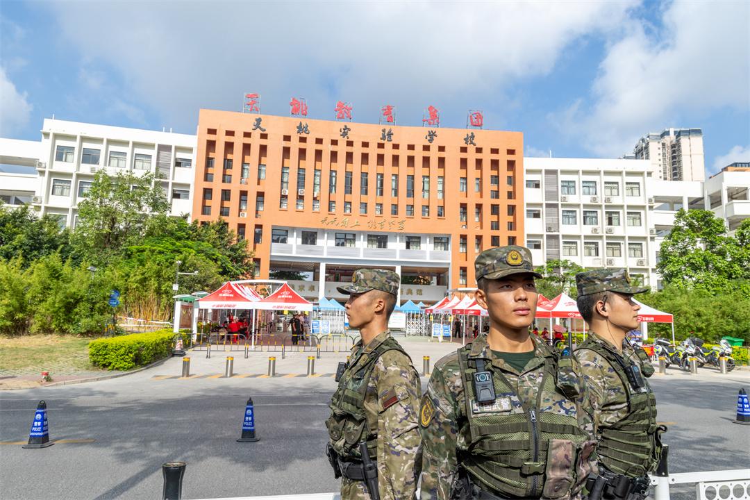 圖為武警官兵在考場入口進(jìn)行定點(diǎn)警戒。吉守水 攝