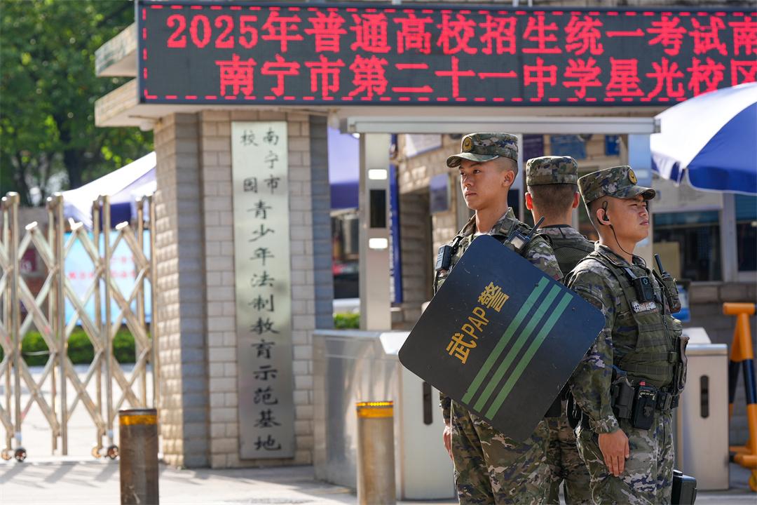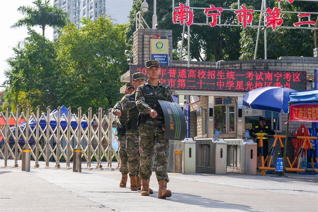 今年高考期間,武警廣西總隊(duì)南寧支隊(duì)科學(xué)優(yōu)化執(zhí)勤編組,在駐地各考點(diǎn)嚴(yán)密部署定點(diǎn)警戒、徒步巡邏與車巡力量,全方位保障考生安全,確保高考順利進(jìn)行。