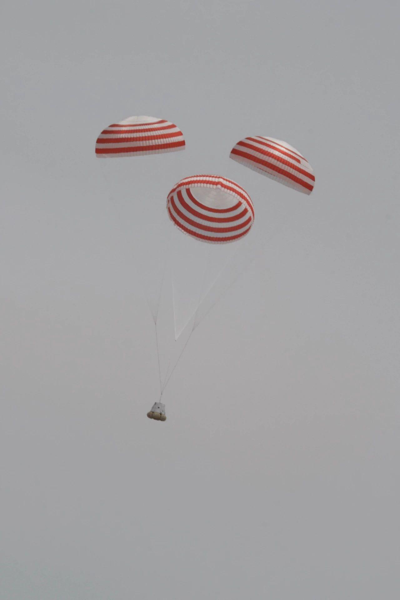 12時(shí)30分,下達(dá)點(diǎn)火指令,夢舟載人飛船逃逸發(fā)動機(jī)成功點(diǎn)火,船塔組合體在固體發(fā)動機(jī)推動下騰空而起,約20秒后達(dá)到預(yù)定高度,返回艙與逃逸塔實(shí)現(xiàn)安全分離,降落傘順利展開。12時(shí)32分,返回艙使用氣囊緩沖方式安全著陸于試驗(yàn)落區(qū)預(yù)定區(qū)域,試驗(yàn)取得圓滿成功。