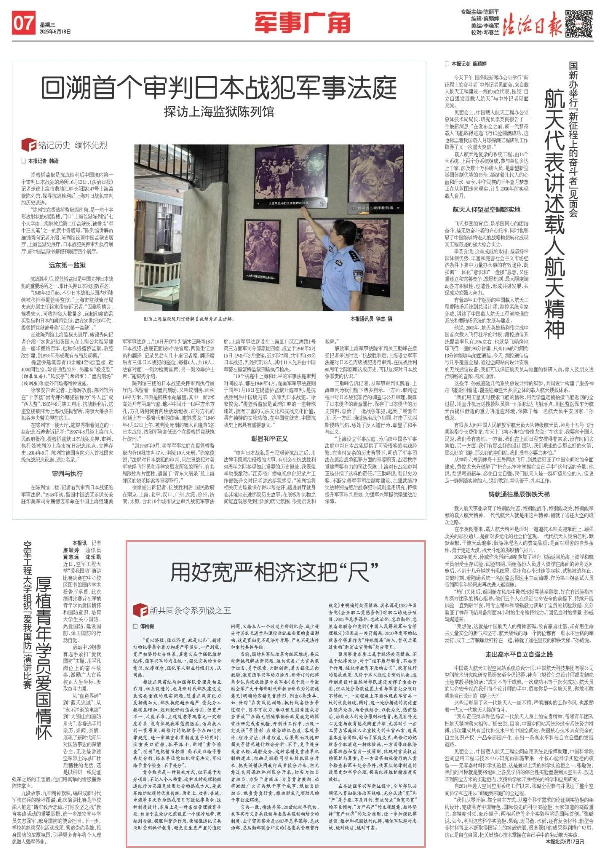 在奮進(jìn)強(qiáng)軍興軍新征程中,全軍部隊(duì)必須深入貫徹依法治軍戰(zhàn)略,充分認(rèn)清“寬”和“嚴(yán)”是手段、不是目的,堅(jiān)決防止“為寬而寬”的不良傾向、“為嚴(yán)而嚴(yán)”的主觀隨意,始終堅(jiān)持“寬嚴(yán)相濟(jì)”的處分原則,進(jìn)一步加強(qiáng)紀(jì)律建設(shè),維護(hù)和鞏固鐵的紀(jì)律,確保軍隊(duì)絕對(duì)忠誠(chéng)、絕對(duì)純潔、絕對(duì)可靠。
