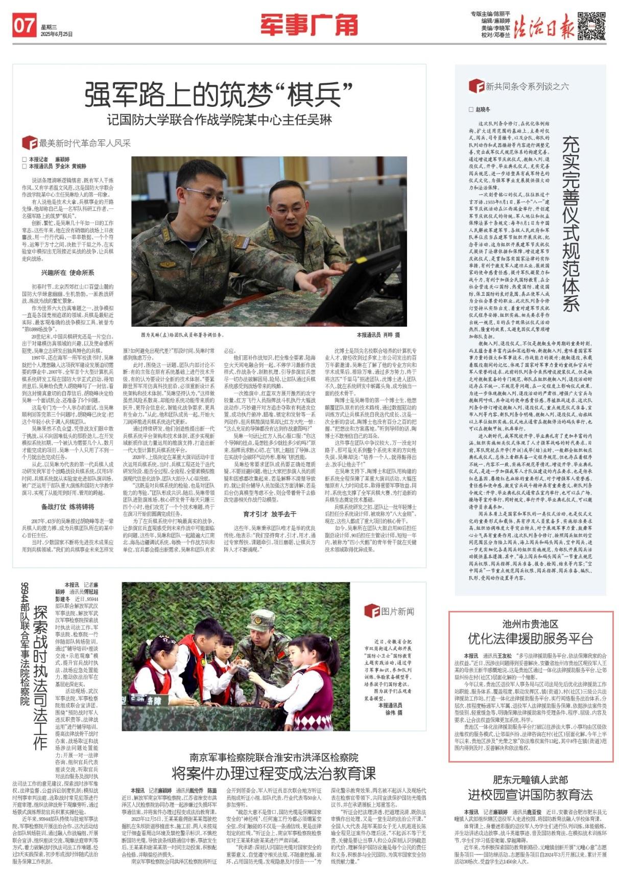 “多虧法律援助服務(wù)平臺(tái),依法保障我家的合法權(quán)益?!苯?,因涉法問題得到妥善解決,安徽省池州市貴池區(qū)現(xiàn)役軍人王某的母親王新華感慨地說。這是貴池區(qū)通過一體化法律援助服務(wù)平臺(tái),讓鄰里糾紛在村(社區(qū))層面化解的一個(gè)縮影。