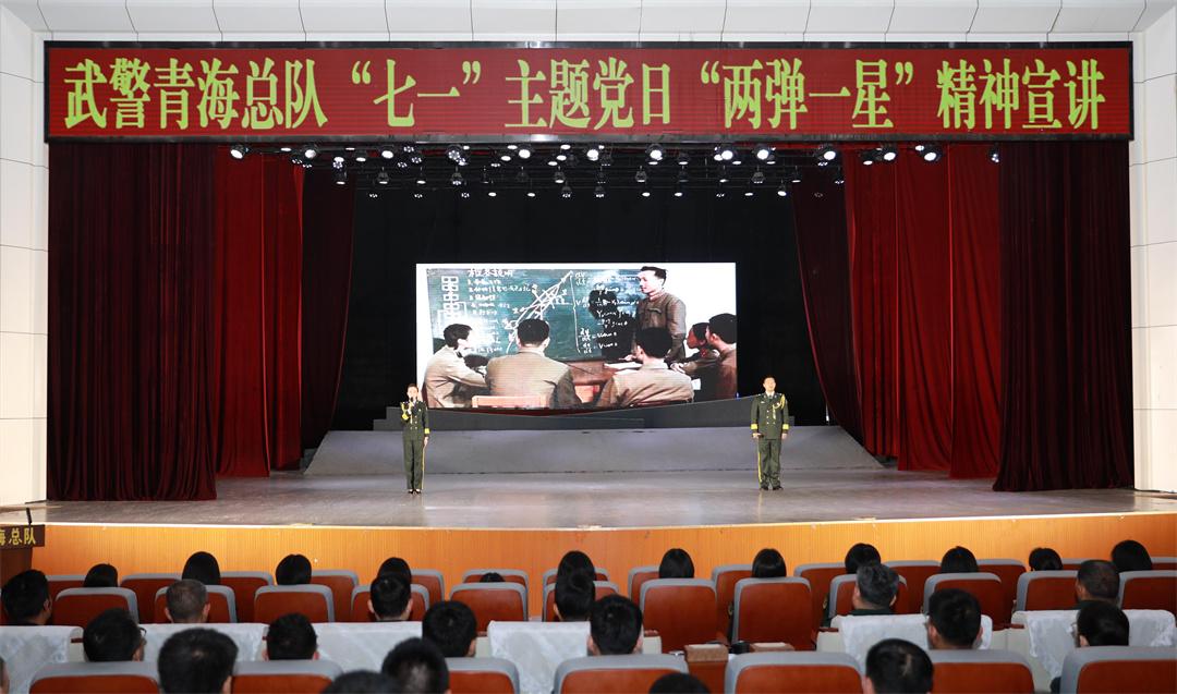 在“七一”建黨節(jié)來臨之際,6月24日,中國原子城“兩彈一星”精神宣講團(tuán)走進(jìn)武警青??傟?duì),開展《永不褪色的金銀灘——“兩彈一星”精神永放光芒》主題宣講活動(dòng)。