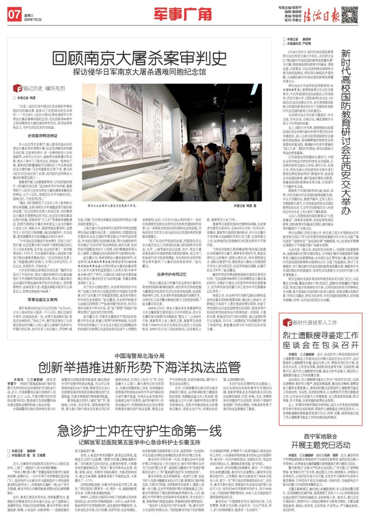 近日,由退役軍人事務部組織的烈士遺骸搜尋鑒定工作座談會在內(nèi)蒙古自治區(qū)包頭市召開。會議圍繞烈士遺骸搜尋發(fā)掘、鑒定分析工作,聚焦專項任務開展、前沿技術運用、工作安全保障、流程機制完善等方面,交流思想、凝聚共識,提升烈士遺骸搜尋發(fā)掘、鑒定分析專業(yè)能力,推動烈士遺骸搜尋鑒定工作高質(zhì)量發(fā)展。