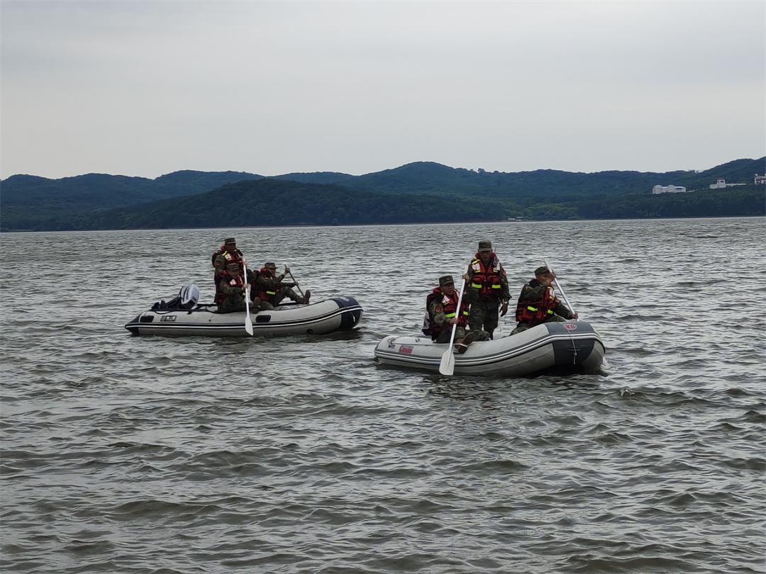 “報(bào)告,前方水域發(fā)現(xiàn)落水人員?!薄鞍搭A(yù)定方案迅速前出處置?!薄笆?!”接收指令后,七臺河軍分區(qū)民兵應(yīng)急連副指導(dǎo)員王彥斌帶領(lǐng)三區(qū)隊(duì)十班全體民兵,迅速駕駛沖鋒舟前出搜救。由于水面寬廣、水流湍急,經(jīng)過幾次打撈,沖鋒舟都難以有效靠近預(yù)定目標(biāo)。水上搜救人員與駐岸保障人員通過對講機(jī)聯(lián)通后,一架無人機(jī)即時(shí)飛往出事水域。保障人員按照傳輸畫面逐幀分析,指導(dǎo)搜救人員利用水上機(jī)器人將落水者成功搭救返航。
