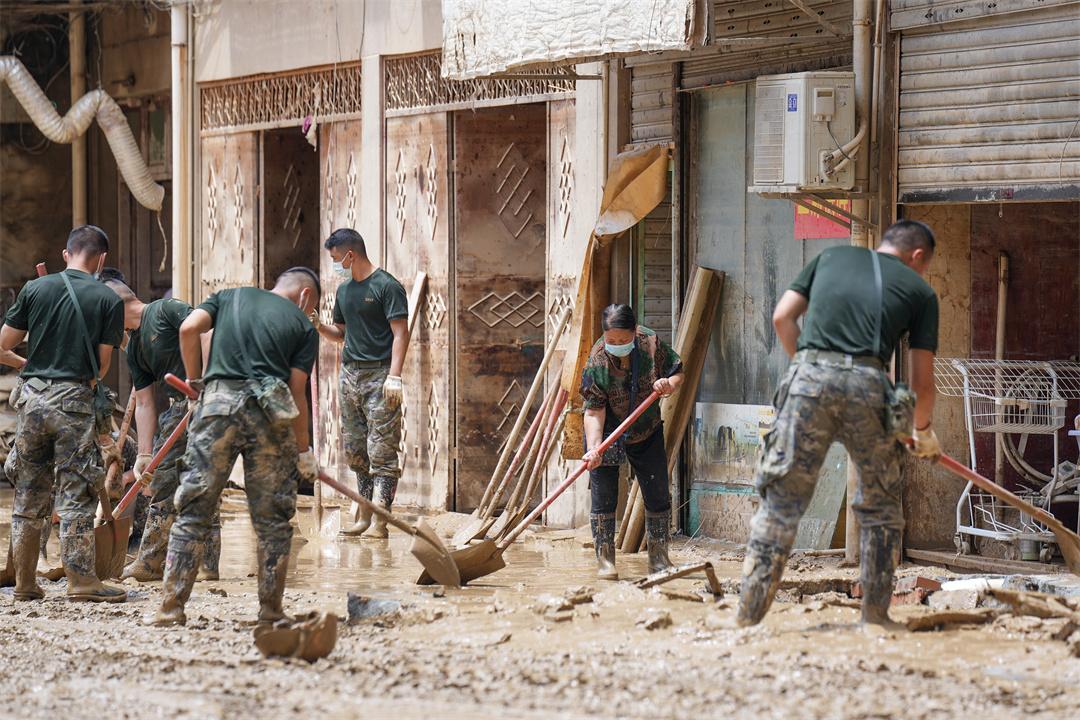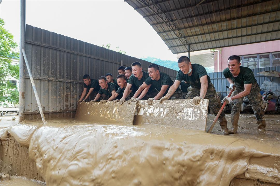 6月25日上午,榕江縣內(nèi)洪水初退,街道民房淤積嚴(yán)重,官兵迅即投入清淤工作,幫助民眾盡快恢復(fù)生產(chǎn)生活環(huán)境。