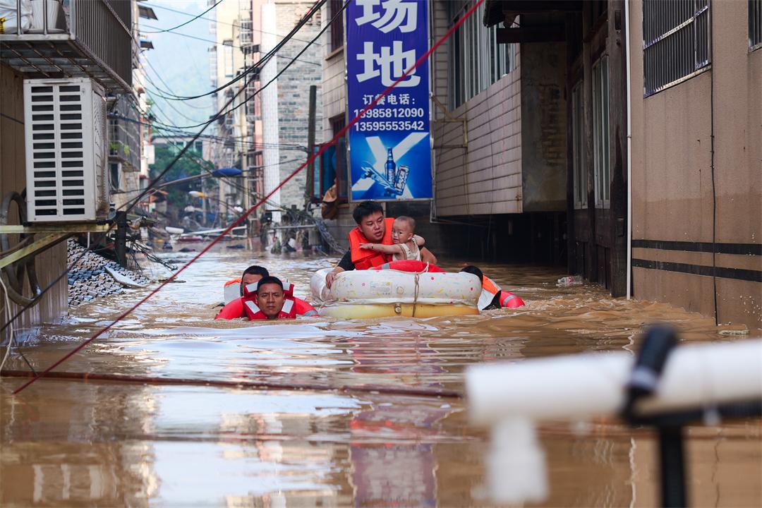 6月24日至7月5日,受持續(xù)強(qiáng)降雨及上游來(lái)水疊加影響,貴州省黔東南州榕江縣城遭遇兩次洪峰過(guò)境,境內(nèi)多條河流水位持續(xù)上漲,縣城多處低洼地帶被淹,人民群眾生命財(cái)產(chǎn)安全遭受?chē)?yán)重威脅。武警貴州總隊(duì)聞令而動(dòng),先后派出千余名官兵攜帶救生衣、沖鋒舟、挖掘機(jī)、推土機(jī)等救援器材奔赴一線,緊急馳援。