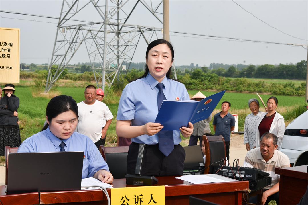 7月15日,解放軍南京軍事檢察院協(xié)同淮安市盱眙縣人民檢察院,對(duì)一起過失損壞軍事通信案提起刑事附帶民事公益訴訟,并在案發(fā)地盱眙縣馬壩鎮(zhèn)一處農(nóng)田間公開開庭審理。盱眙縣人民檢察院檢察長(zhǎng)潘凌云作為公訴人出庭指控犯罪,南京軍事檢察院大校檢察長(zhǎng)劉劍作為附帶民事公益訴訟起訴人出庭提起民事公益訴訟,盱眙縣人民法院院長(zhǎng)田庚擔(dān)任審判長(zhǎng)。為加大案件警示教育效果,庭審邀請(qǐng)全國(guó)人大代表、江蘇省人大代表、部隊(duì)有關(guān)人員,以及案發(fā)地附近村民100余人參與旁聽。