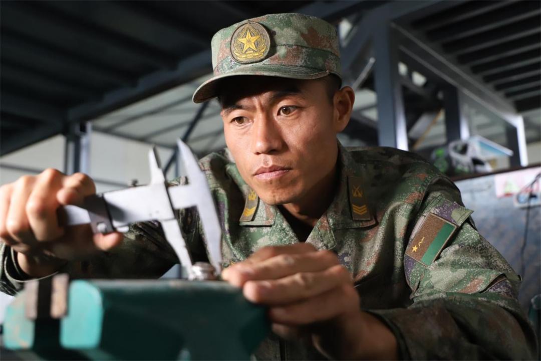 圖為雷耀明在測量裝備維修所需的加工工件尺寸。張翔 攝