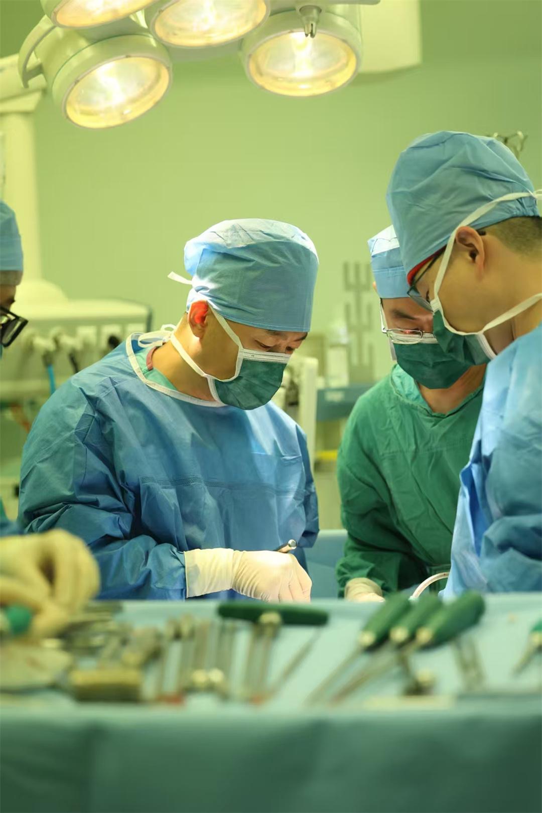 圖為張雪松主任正在為患者進(jìn)行手術(shù)。