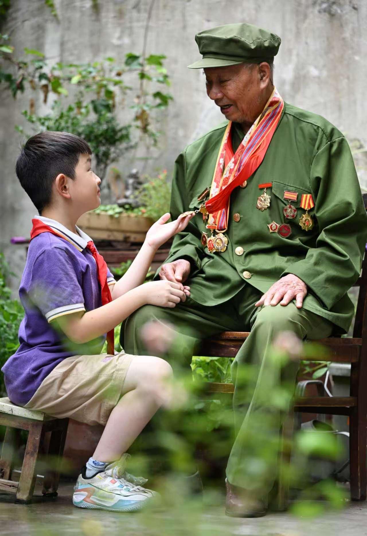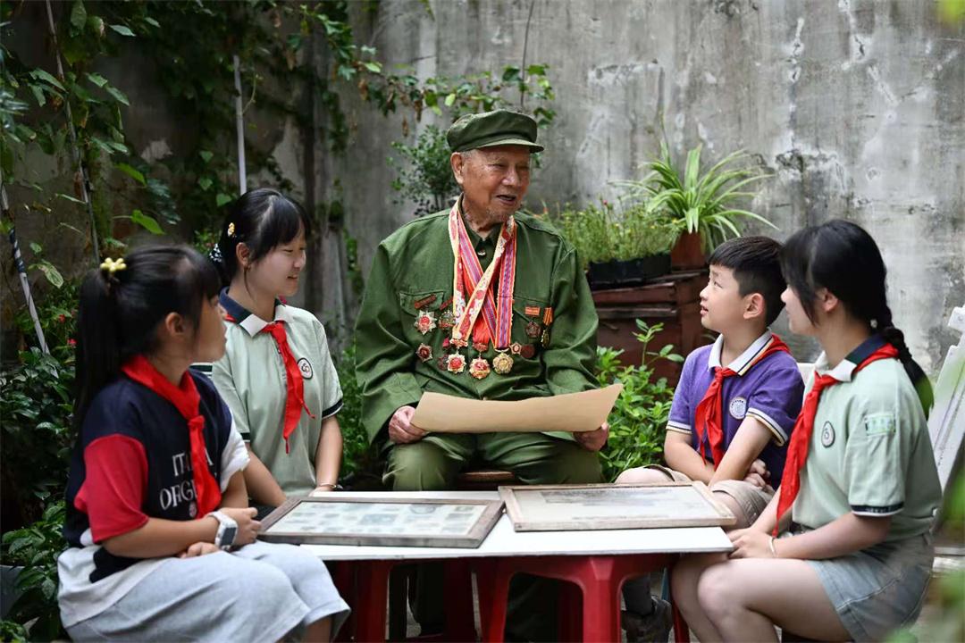 圖為孩子們走進老兵家中,聆聽戰(zhàn)斗故事。