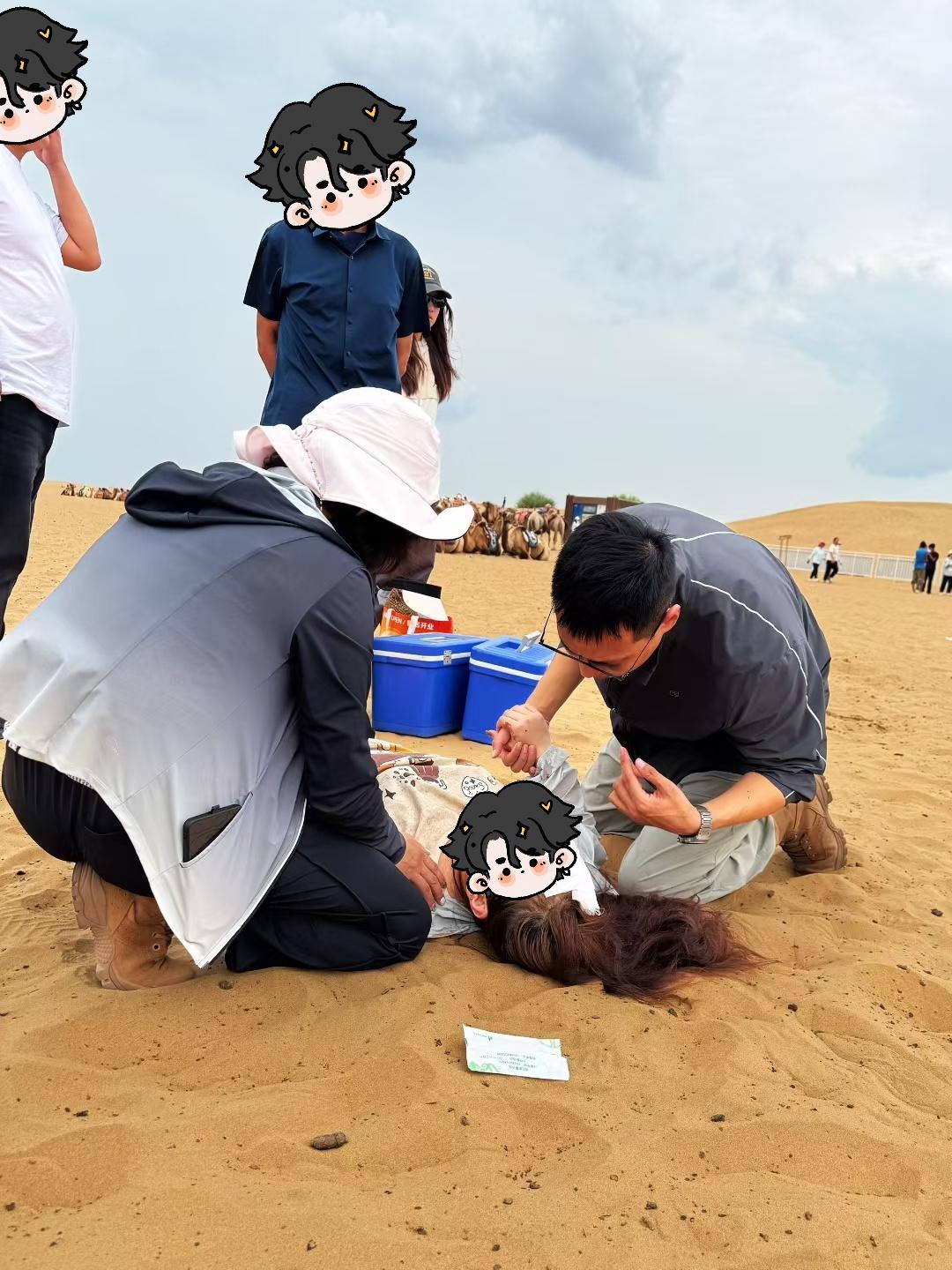 當(dāng)日下午,一名30多歲女游客帶著三歲兒子體驗景區(qū)駱駝騎行項目時,因駱駝突然受驚失衡,母子二人從駝背上墜落倒地,情況十分危急。景區(qū)工作人員雖然第一時間抵達(dá)現(xiàn)場,但因缺乏專業(yè)醫(yī)療知識,無法及時進(jìn)行有效救治。