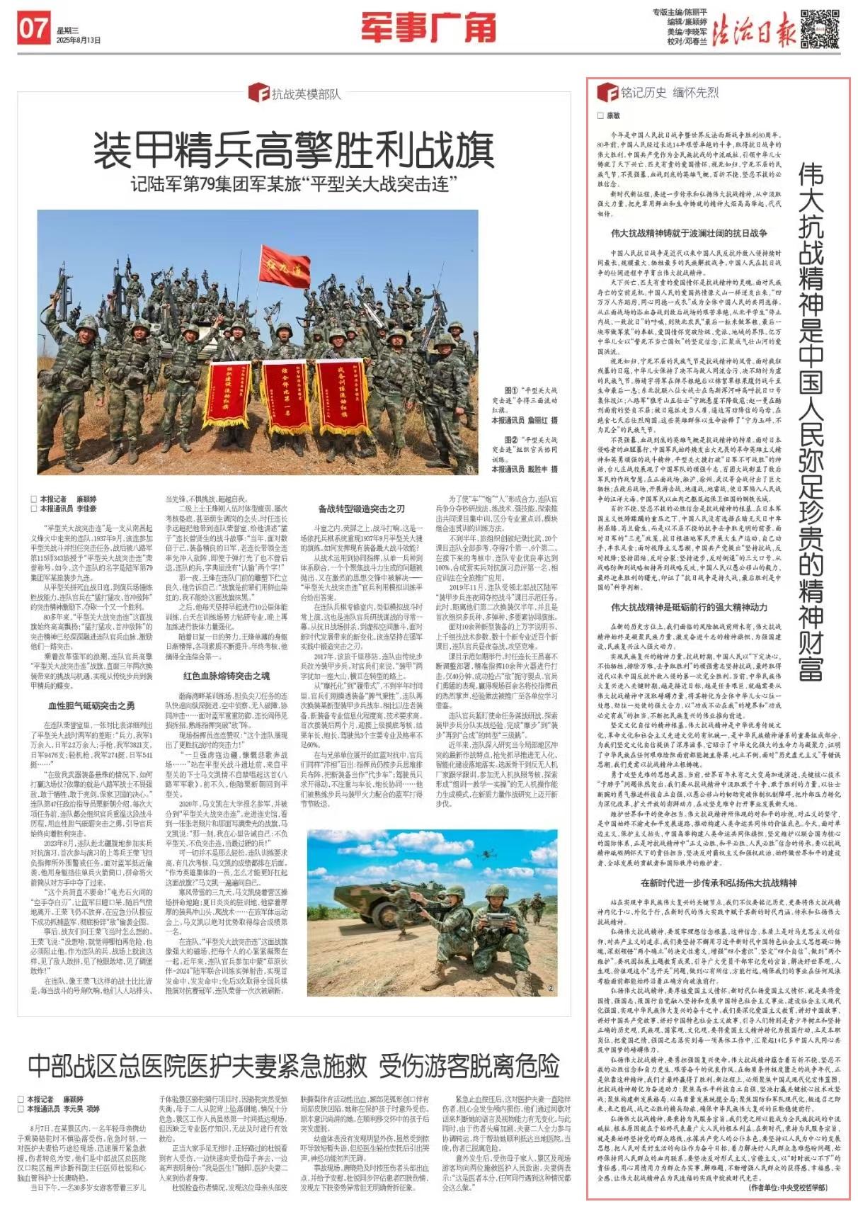 在新的歷史方位上,我們面臨的風(fēng)險(xiǎn)挑戰(zhàn)前所未有,偉大抗戰(zhàn)精神始終是凝聚民族力量、激發(fā)奮進(jìn)斗志的精神旗幟,為強(qiáng)國(guó)建設(shè)、民族復(fù)興注入強(qiáng)大動(dòng)力。