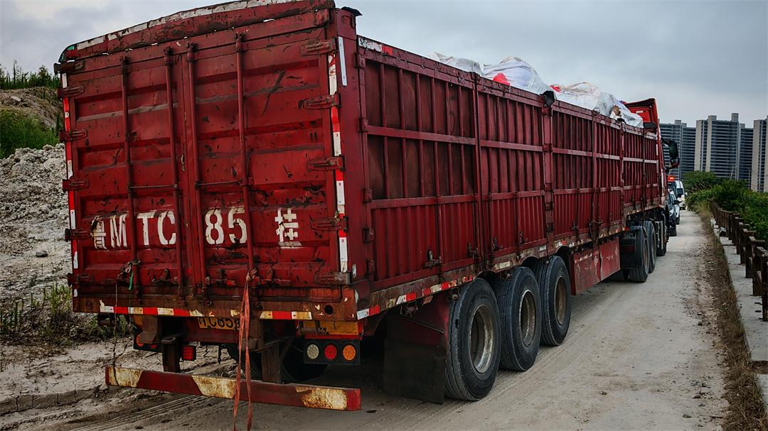 執(zhí)法艇到達(dá)現(xiàn)場時,發(fā)現(xiàn)1艘未編刷船名船號的船舶正在碼頭卸貨,海警執(zhí)法員憑借經(jīng)驗判斷該船正在進(jìn)行違法活動,果斷進(jìn)行登臨檢查。經(jīng)查,該船系“三無”船舶,長約40米,寬約7米,船頭白色,船身藍(lán)紅色,船艙內(nèi)存有大量白色編織袋,袋內(nèi)有牛肚、牛雜等凍品100余噸,隨船人員無法提供該批凍品合法來源證明,該行為涉嫌構(gòu)成走私國家禁止進(jìn)出口貨物、物品罪。同時,另一組海警執(zhí)法員在碼頭查獲6輛準(zhǔn)備轉(zhuǎn)運走私凍品的半掛車,查獲凍品40余噸。目前,案件正在進(jìn)一步偵辦中。