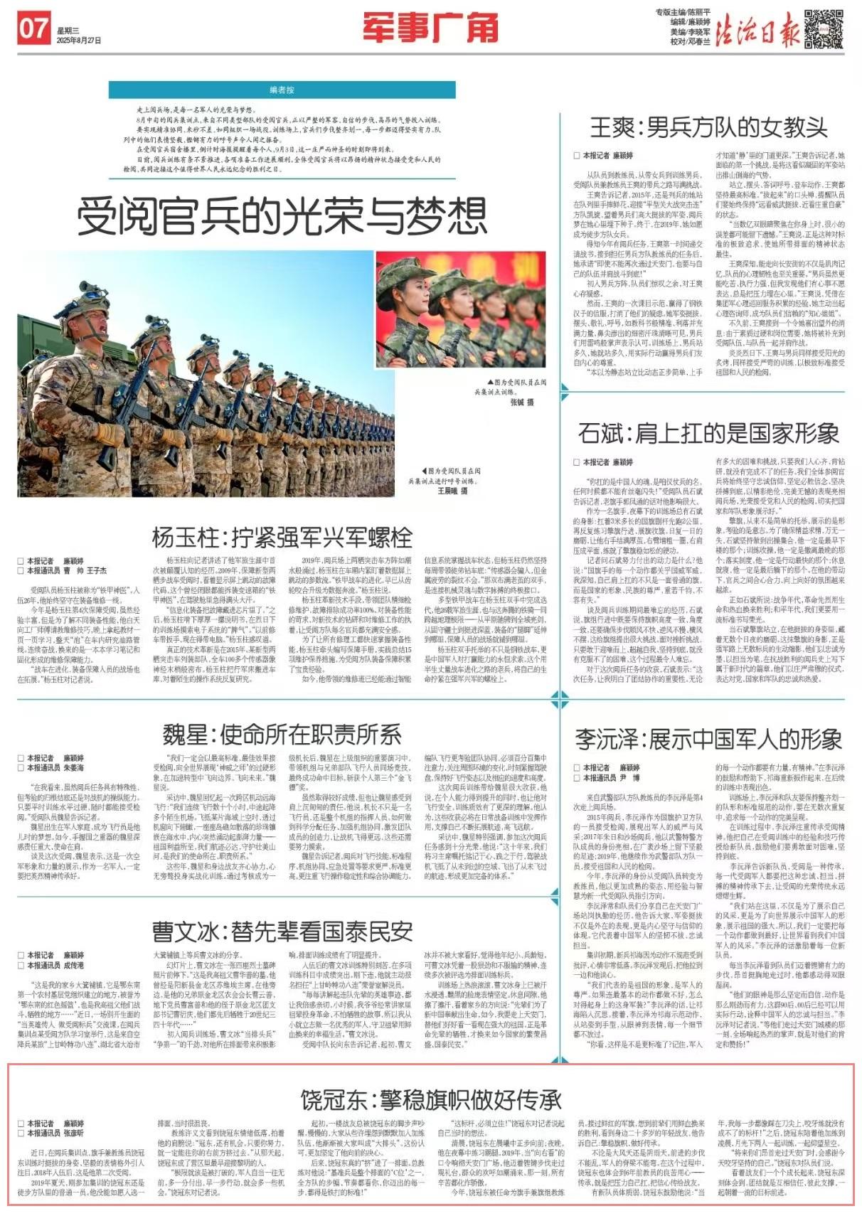 后來(lái),饒冠東真的“擠”進(jìn)了一排面??偨叹殞?duì)他說(shuō):“基準(zhǔn)兵是整個(gè)排面的‘C位’之一,全方隊(duì)的步幅、節(jié)奏都看你,你邁出的每一步,都得是鐵打的標(biāo)準(zhǔn)!”